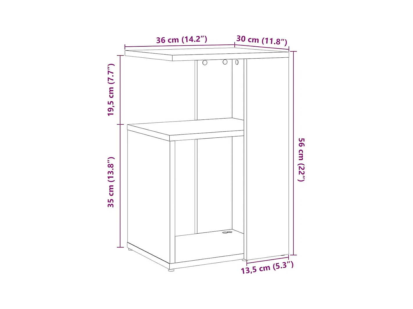 Table d'appoint chêne artisanal 36x30x56 cm bois d'ingénierie