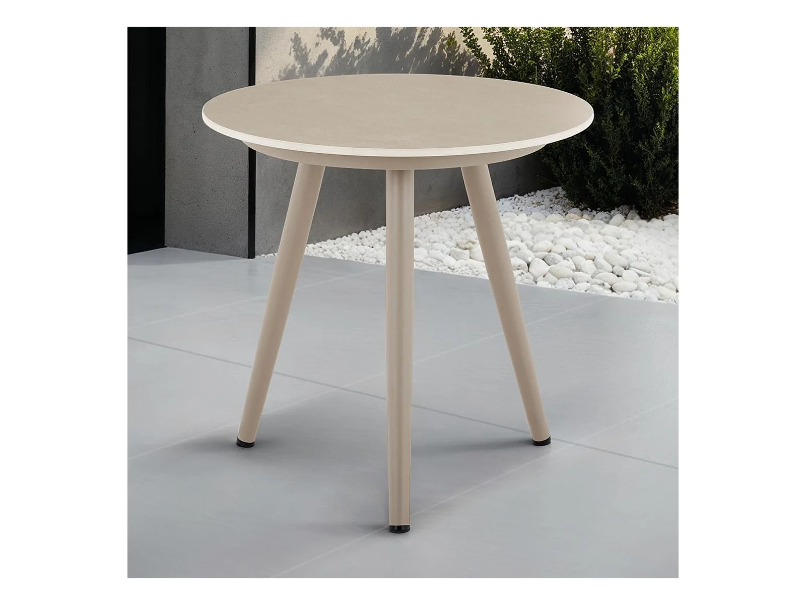 Table d’appoint extérieur ROSALIA ronde en pierre frittée coloris champagne diamètre 45 cm pour balcon ou terrasse