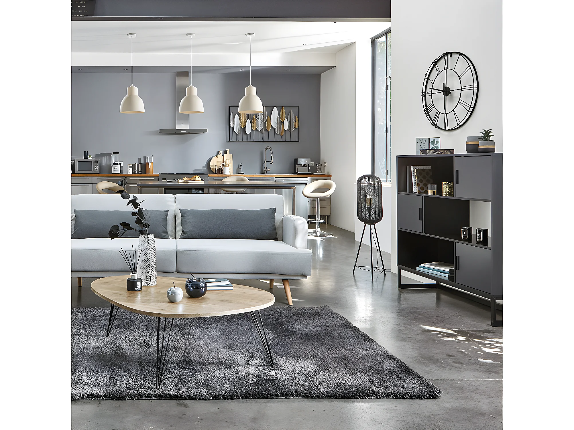 Table d'appoint en bois et pieds en métal noir 69 x 54 x H 60 cm