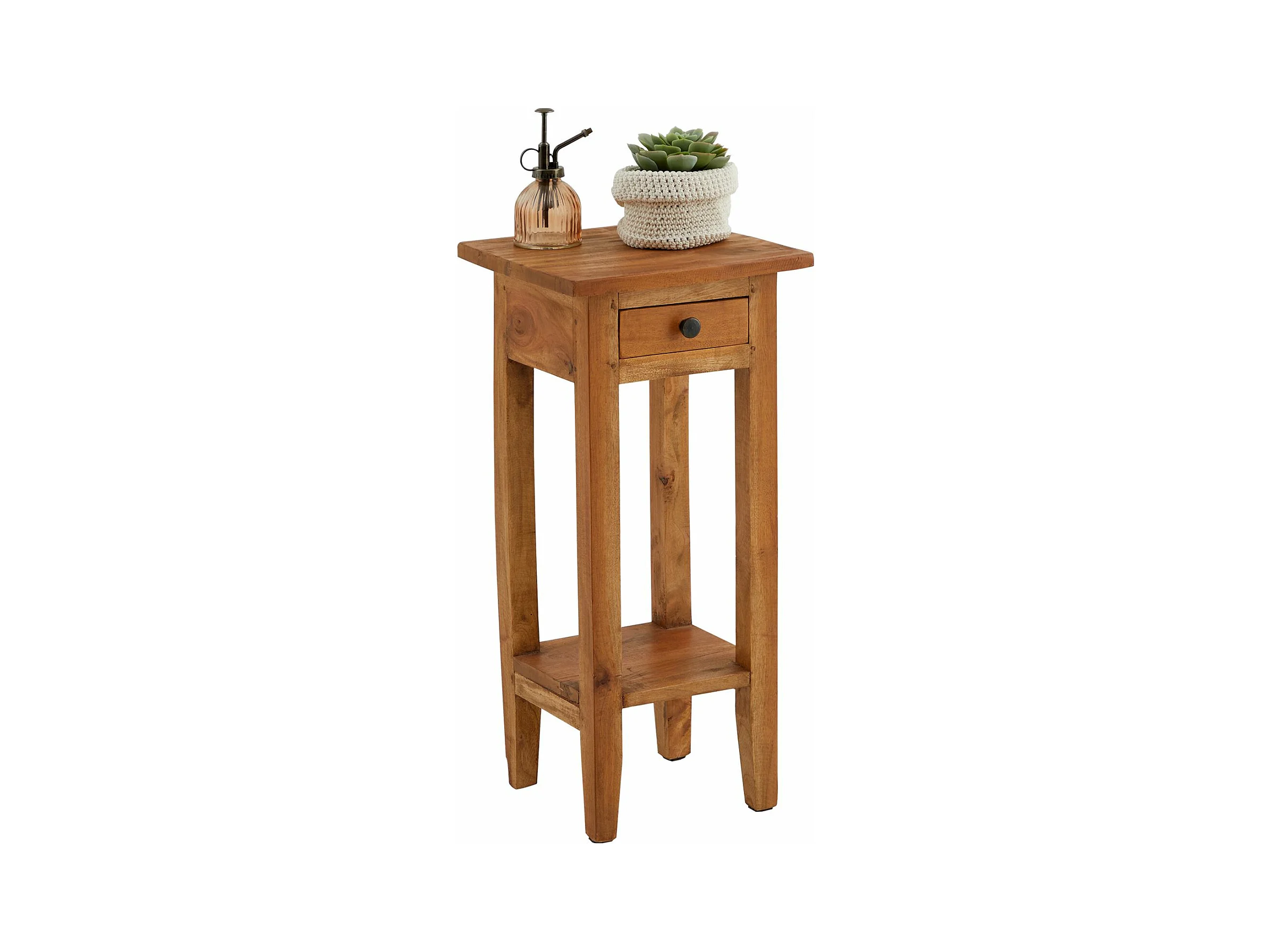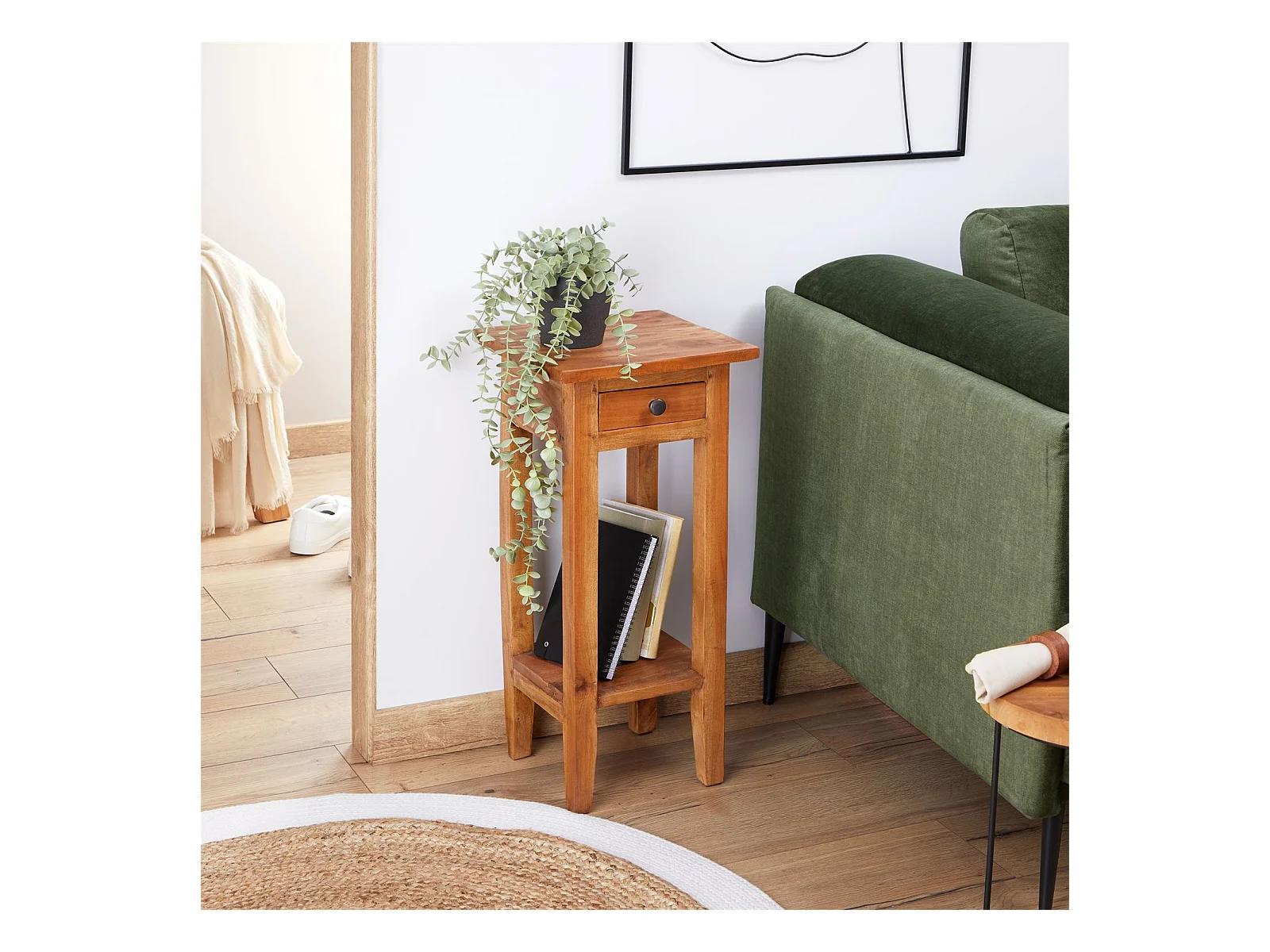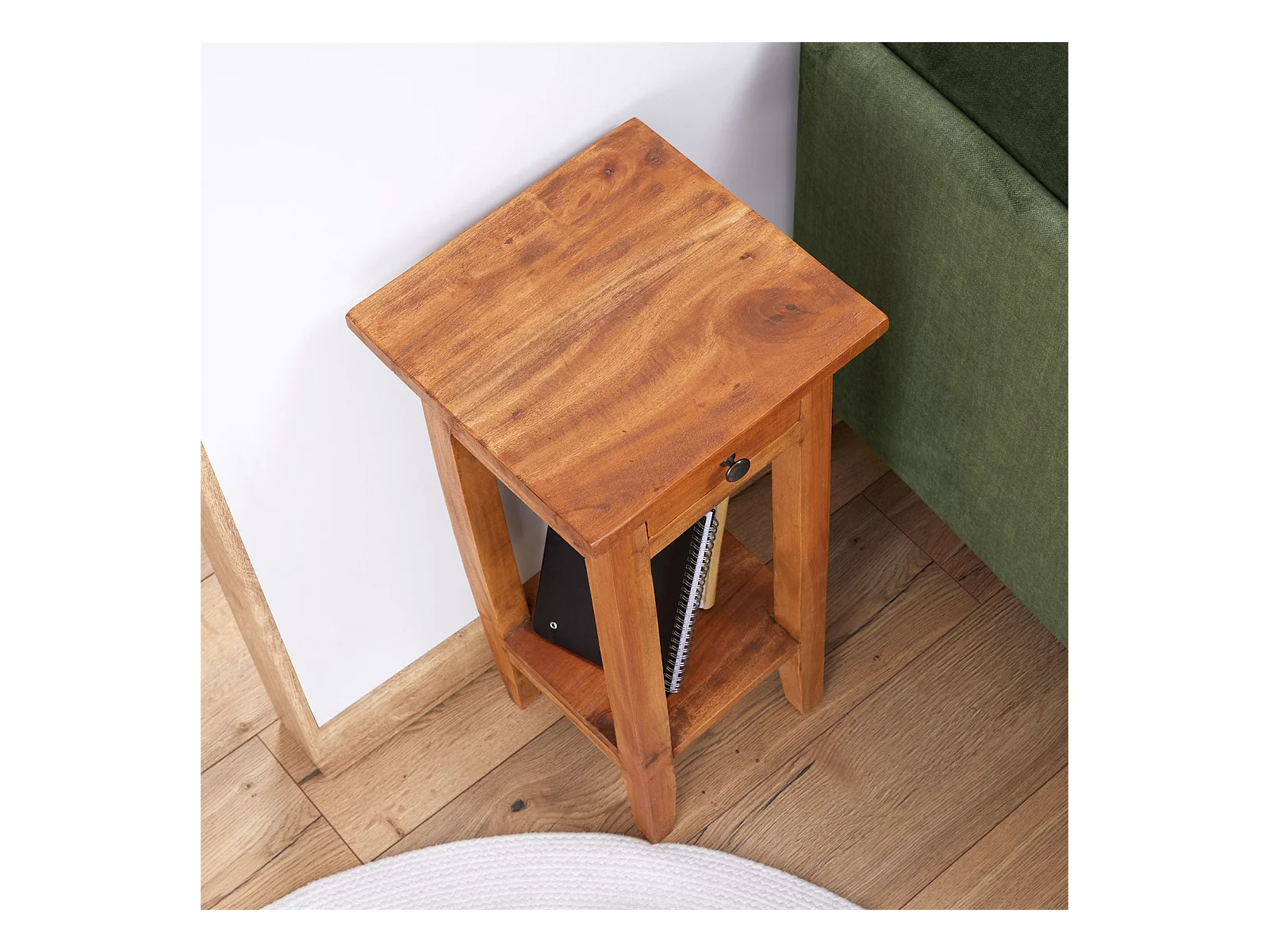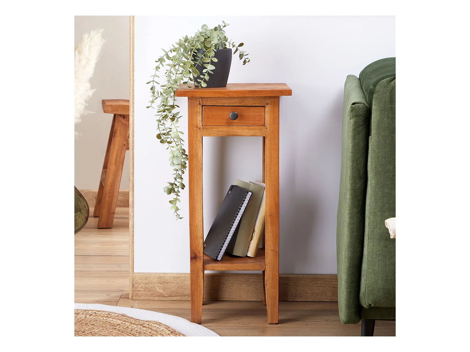 Table d'appoint GERBIER H 66 cm, en acajou finition naturelle avec 1 tiroir et 1 étagère
