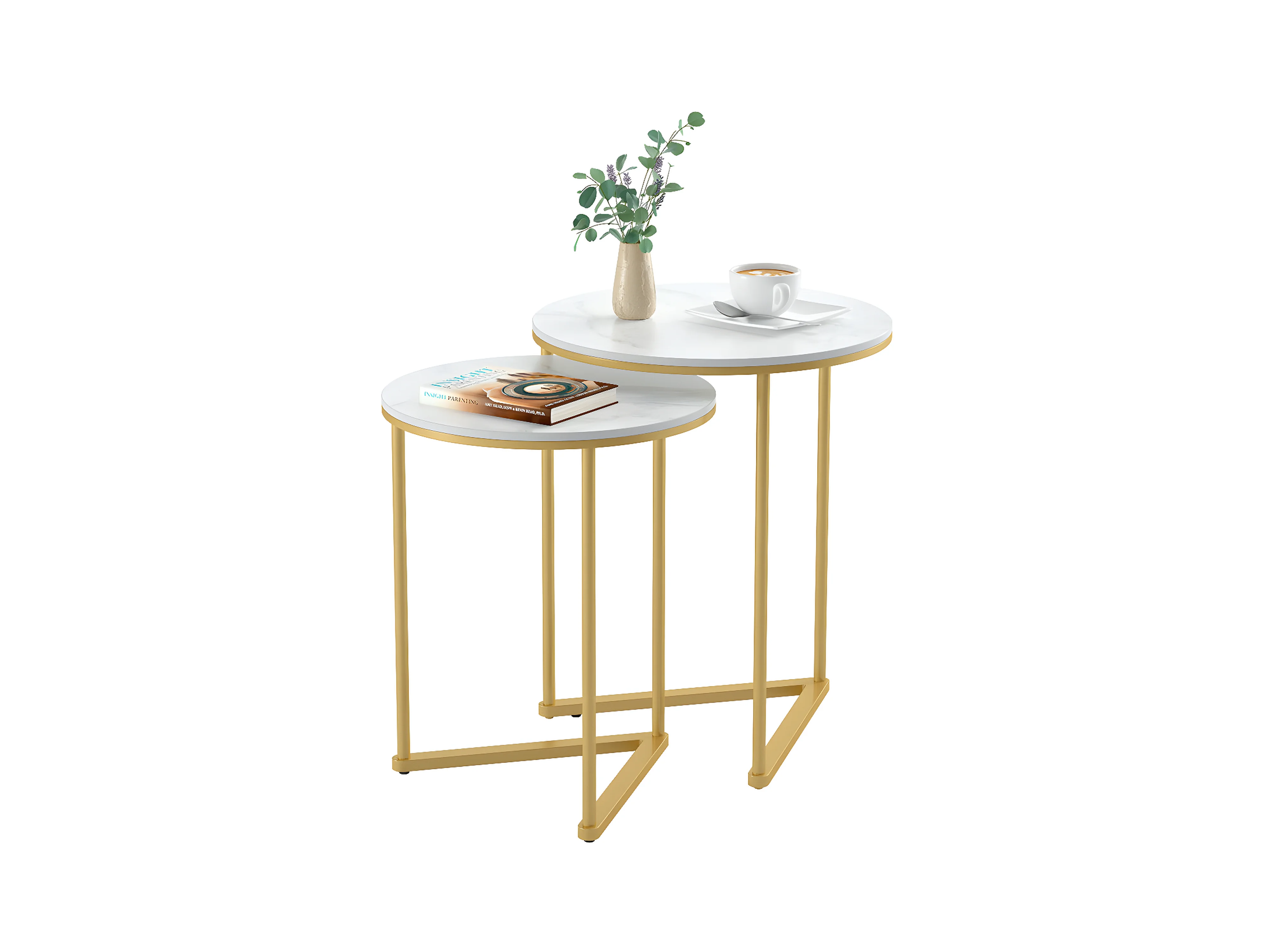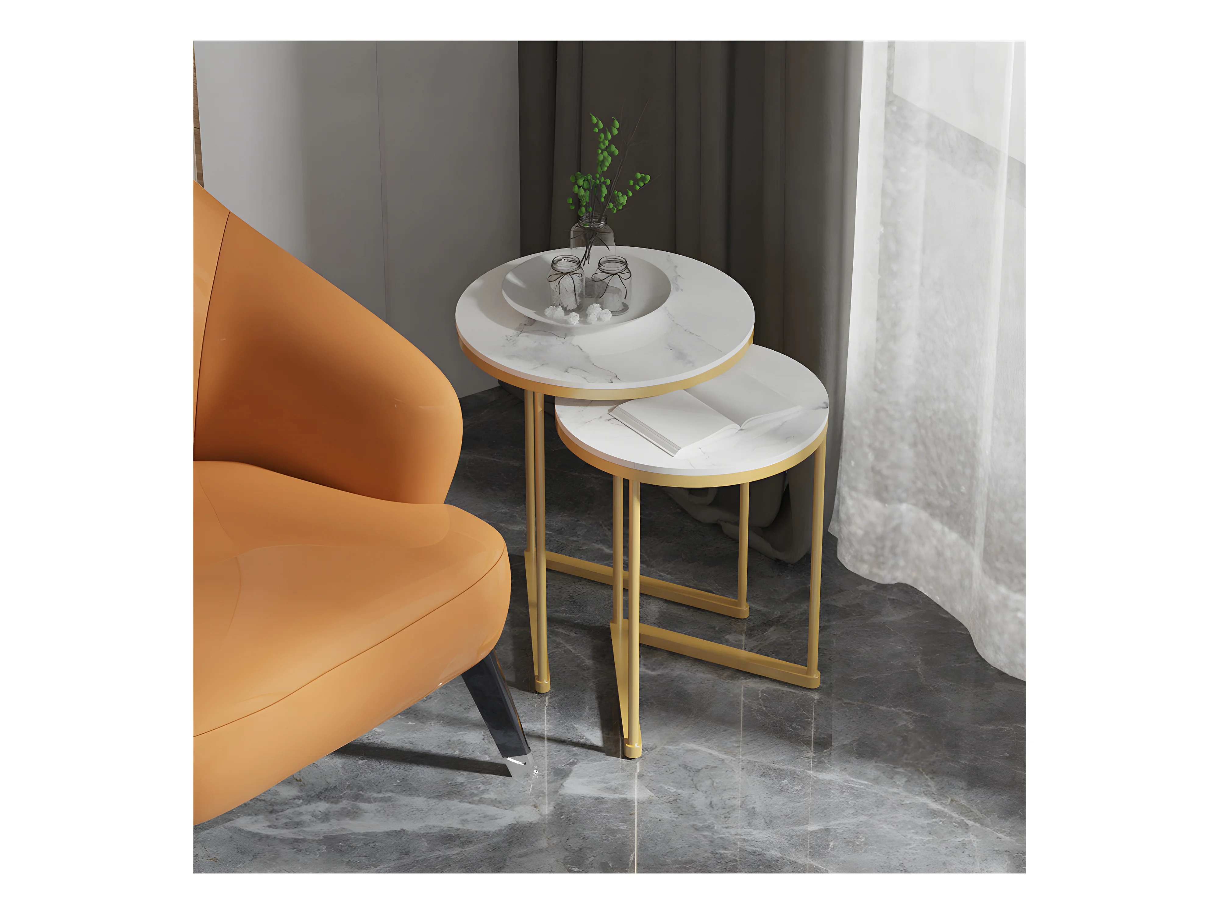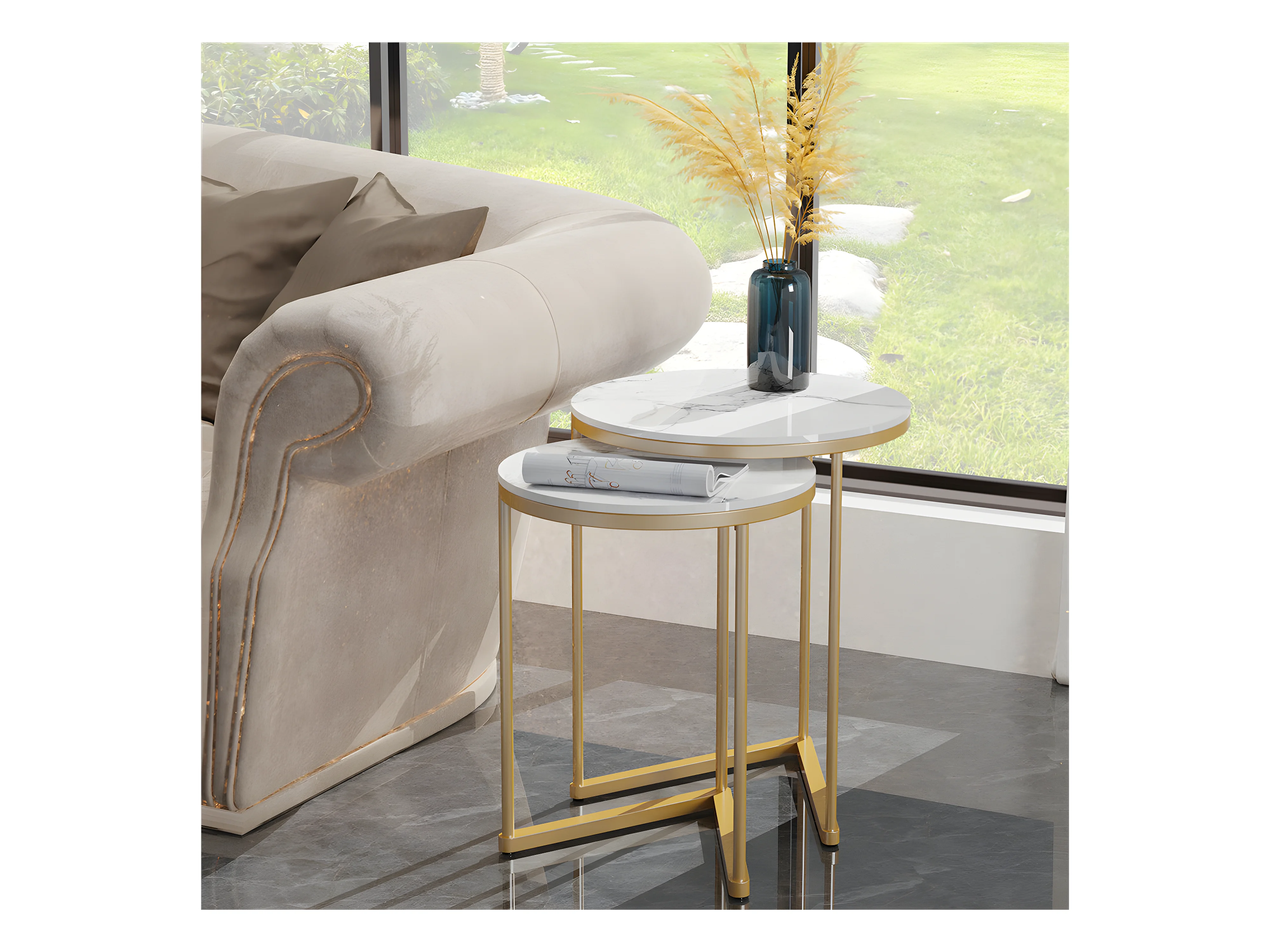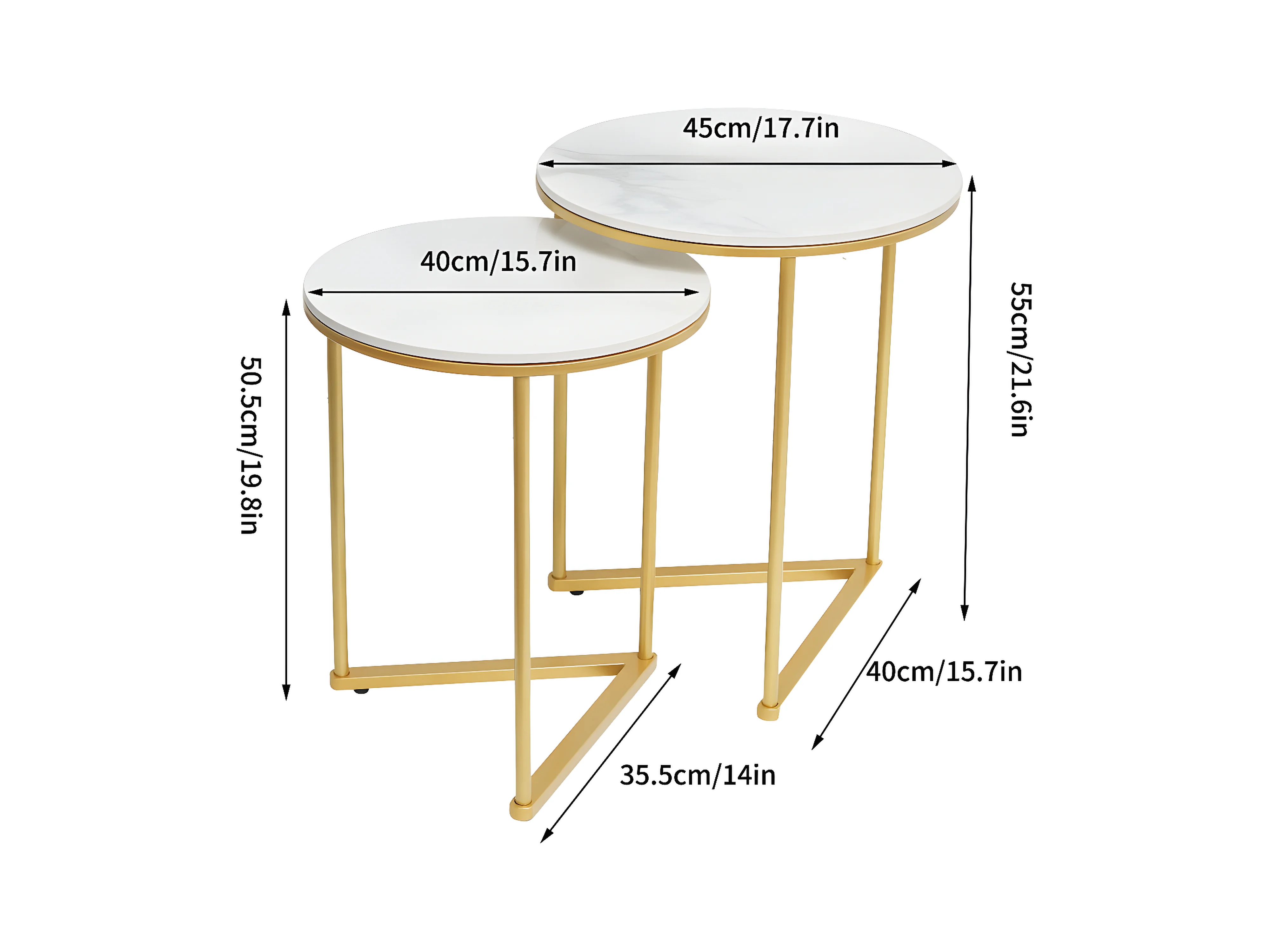 Lot de 2 Tables Gigognes "Lolita" 56cm Or & Blanc