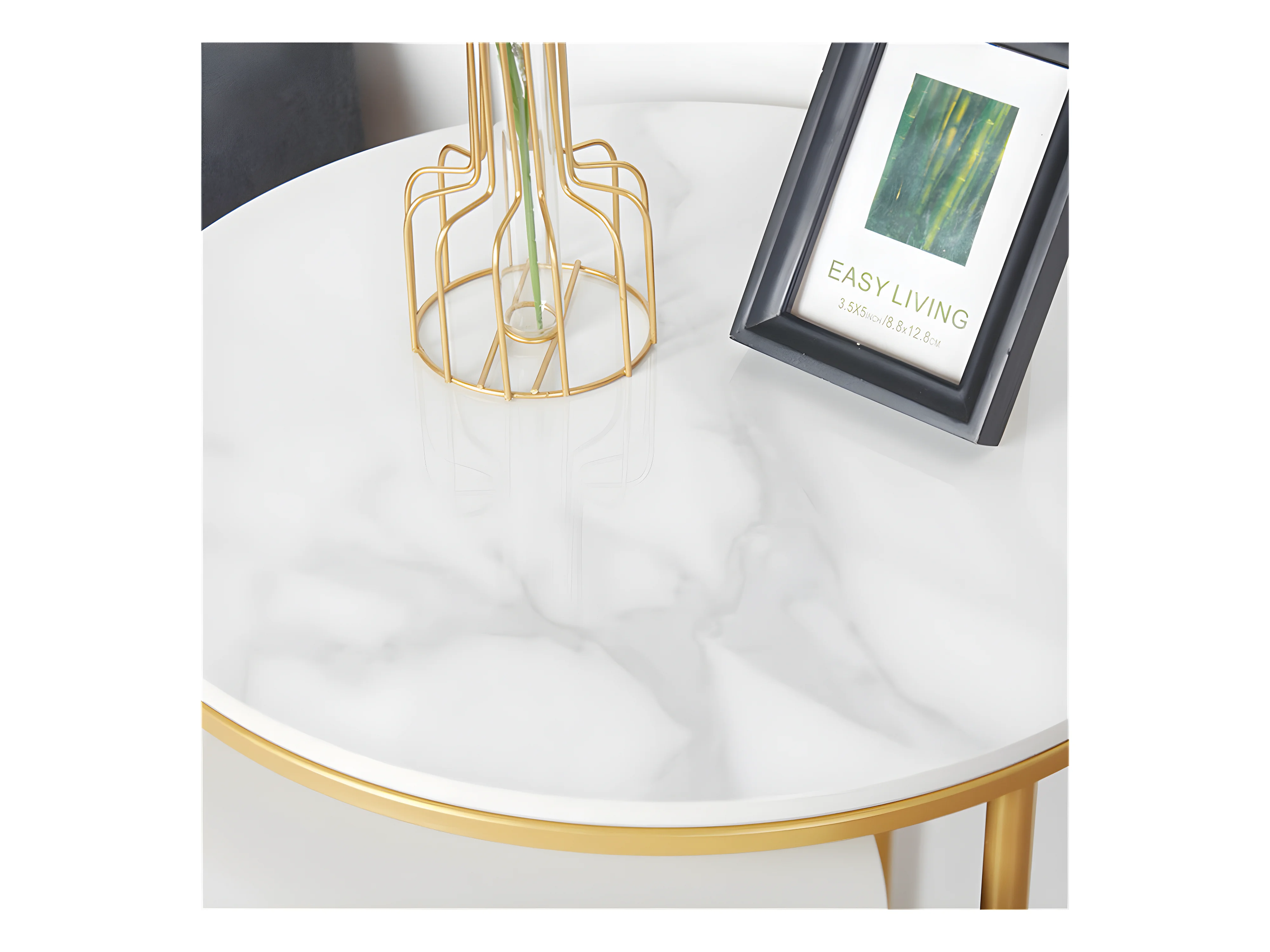 Table d'Appoint Effet Marbre "Alana" 63cm Blanc
