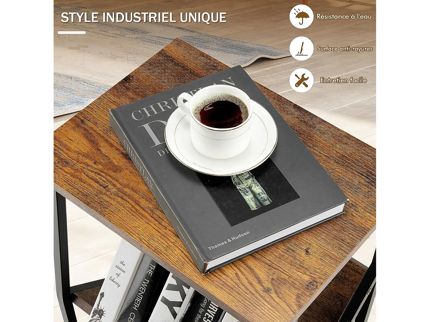 Table d'Appoint Industriel, Bout de Canapé 3 Niveaux avec Porte-revues,40 x 30 x 61 cm