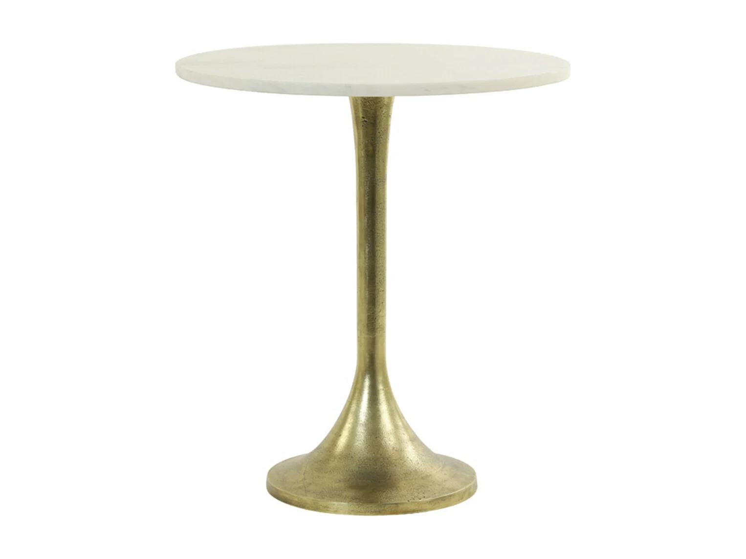 Table d'appoint ronde marbre blanc et métal doré Hugos H 46cm