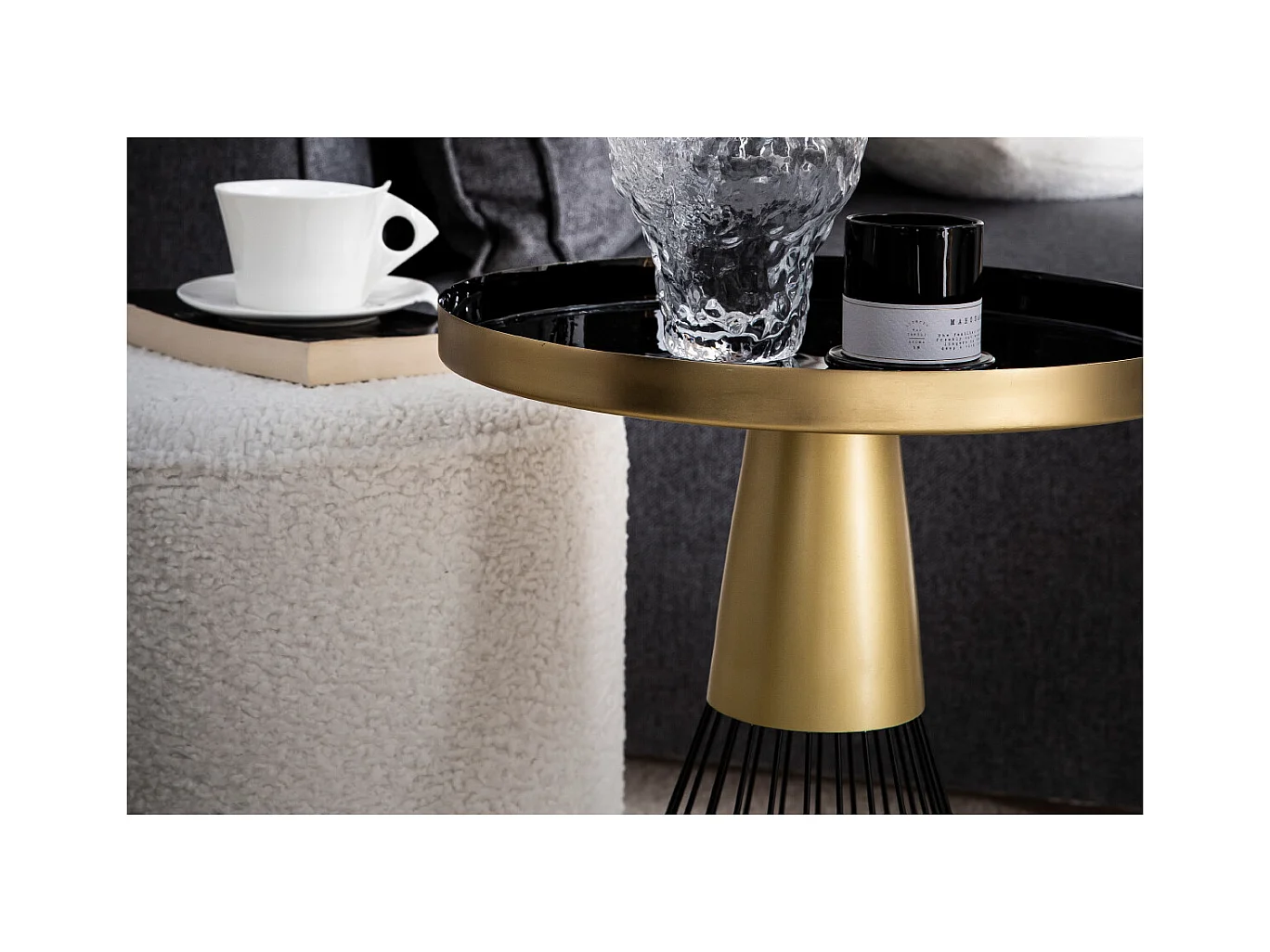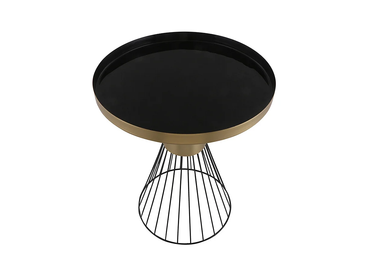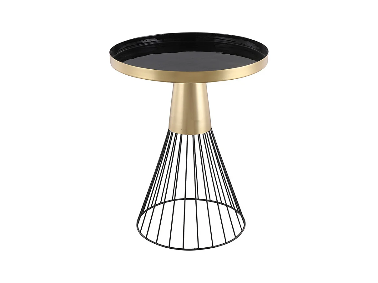 Table d'appoint ronde en acier laqué noir et doré D41 cm SPLEEN