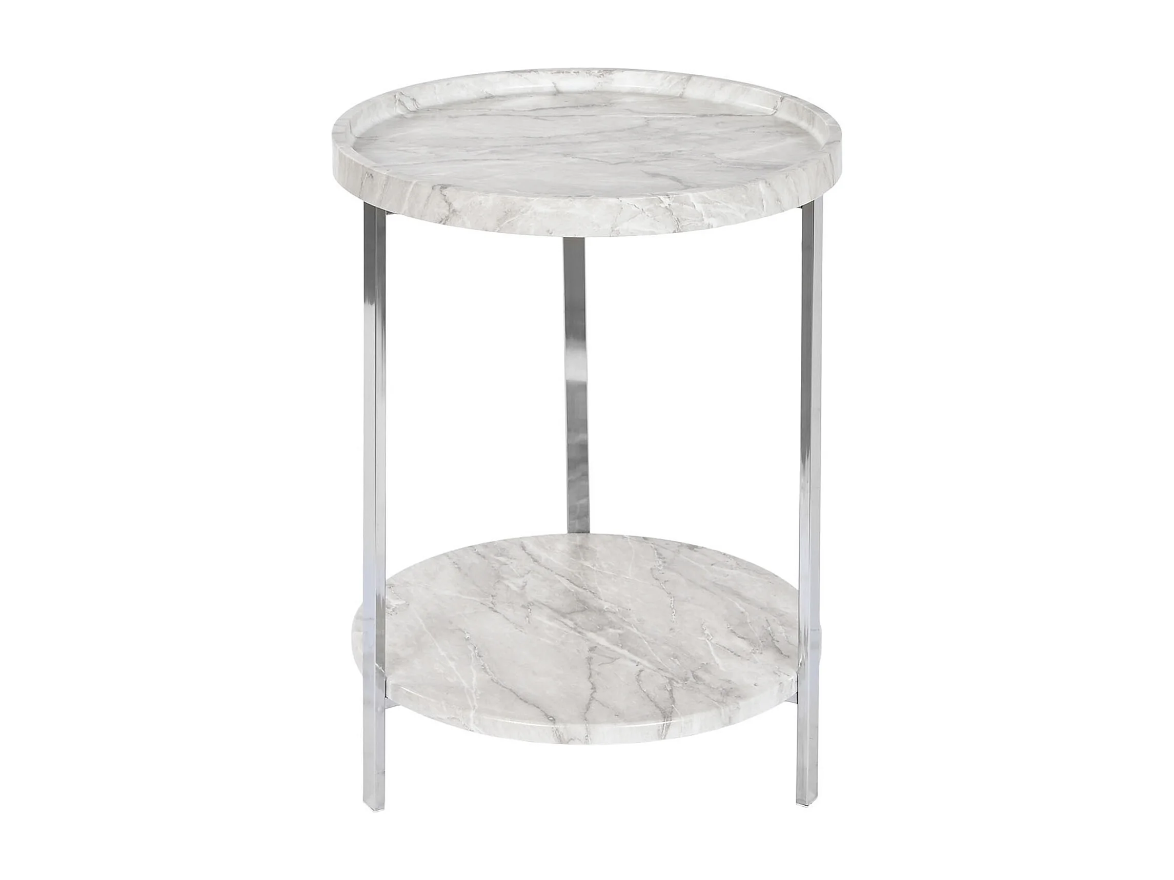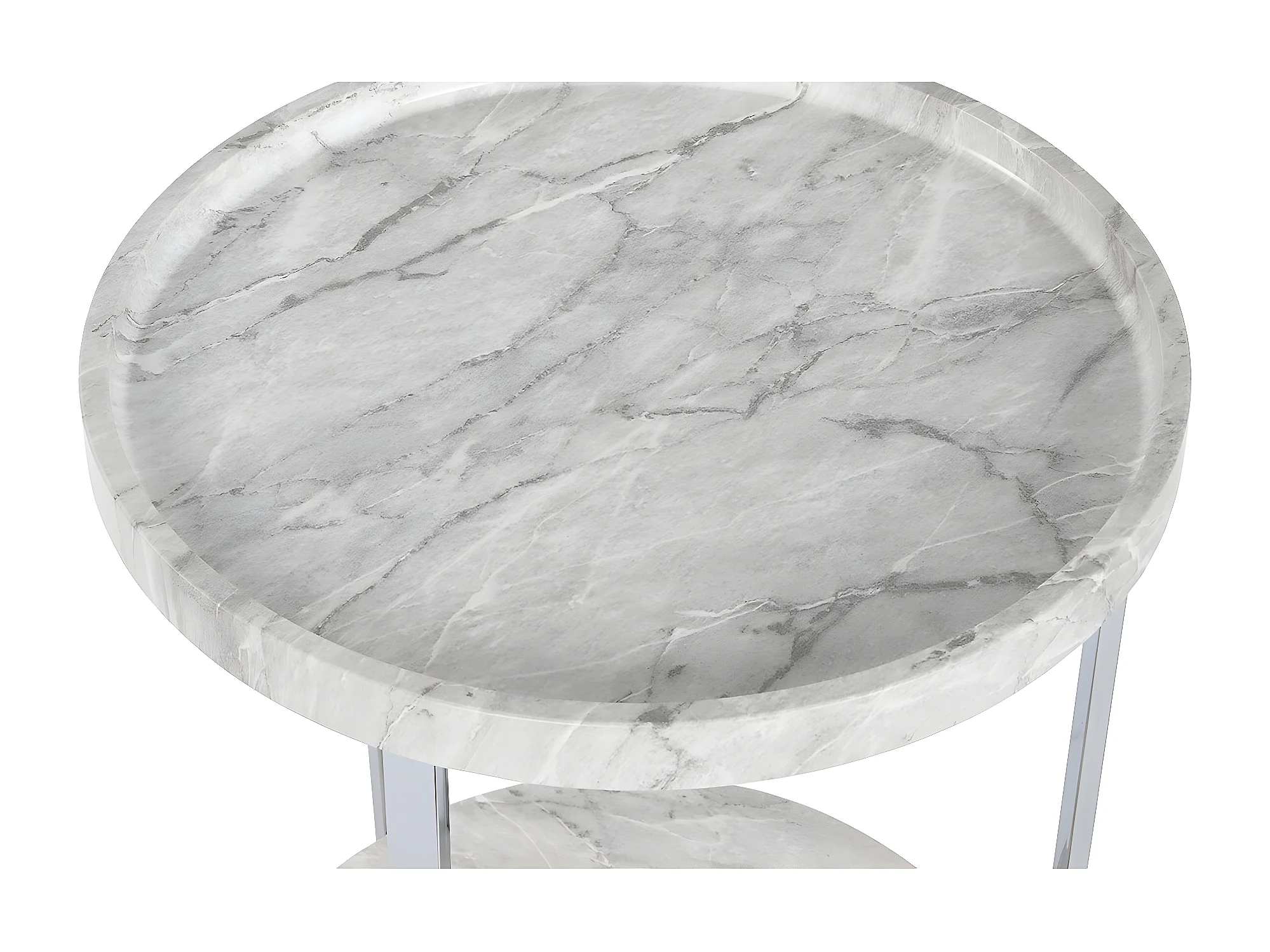 Bout de canapé tulipe en métal argenté et marbre blanc D40 - PLAKA
