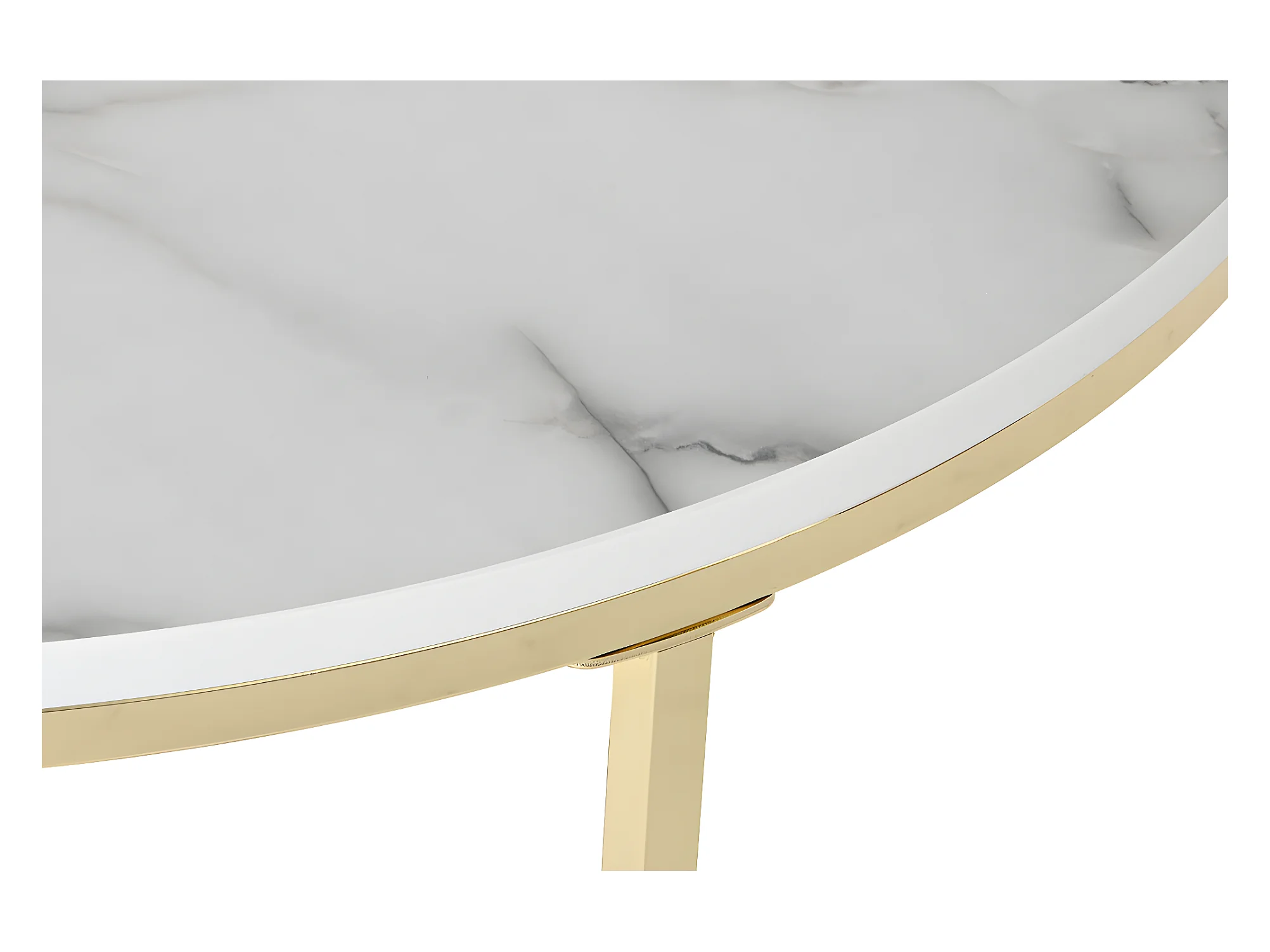 Table d'appoint ronde en métal doré et marbre blanc - diamètre 80 x Hauteur 35 cm