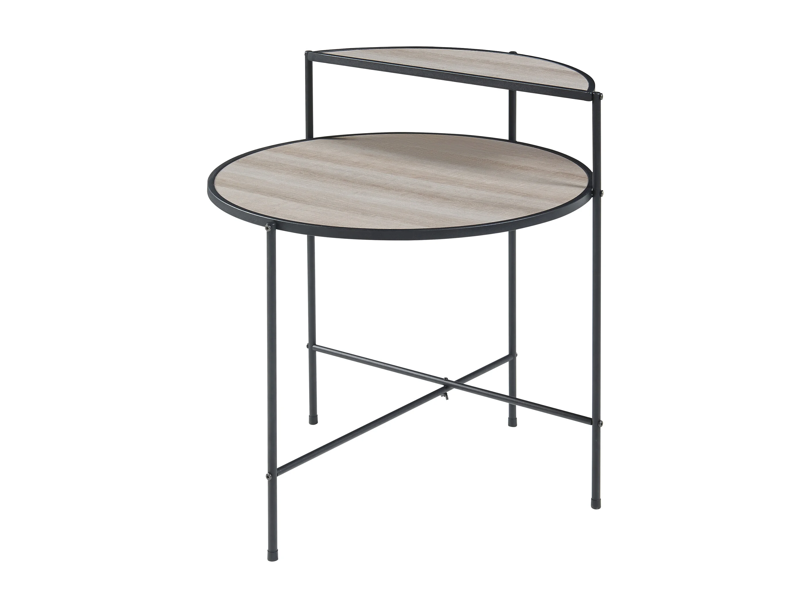 Table d'appoint, table de salon en bois coloris chêne et métal noir - diamètre 50 x hauteur 52 cm
