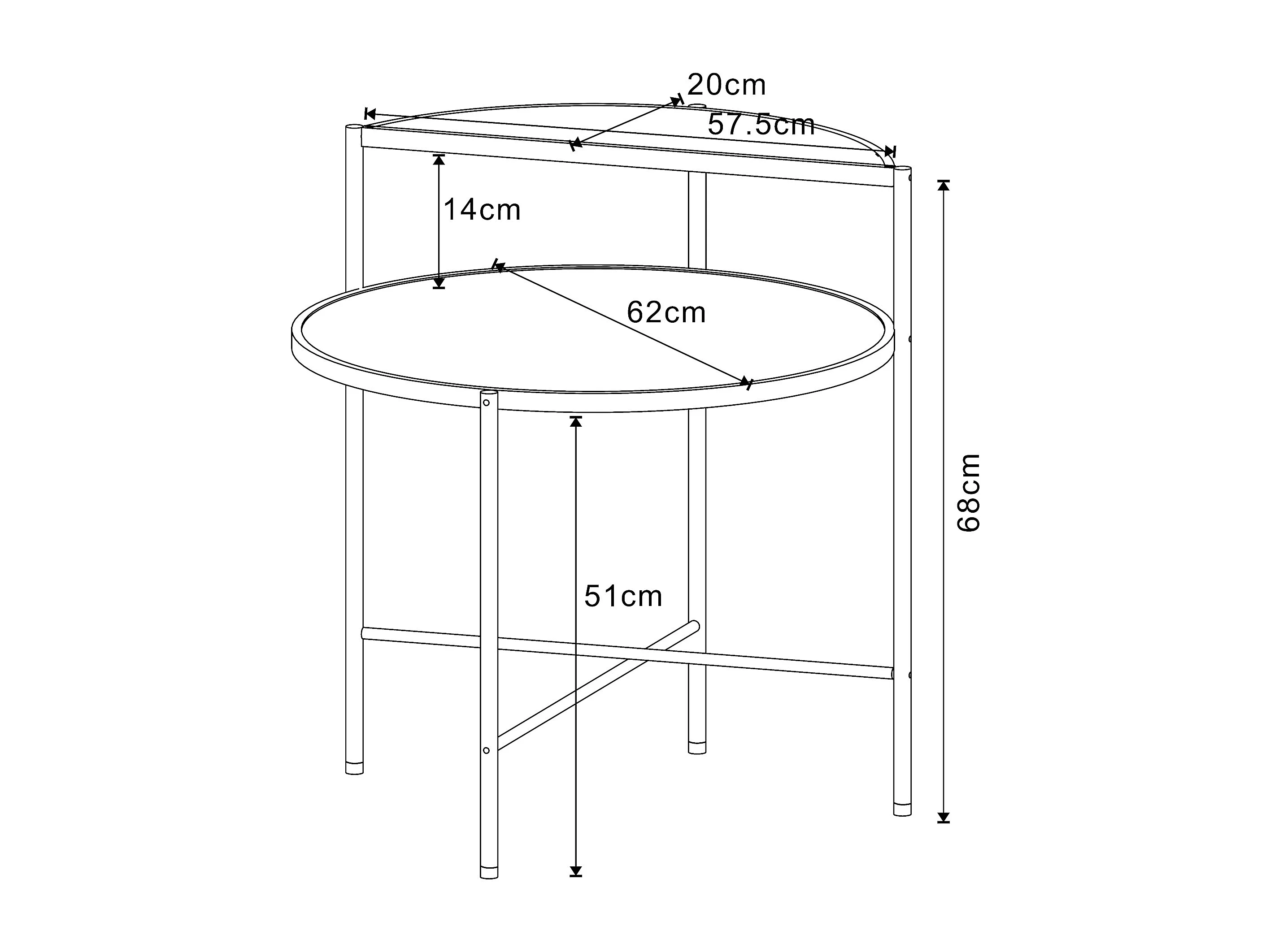 Table d'appoint ronde Fyresdal avec étagère métal MDF 68 x 62 cm noir effet chêne [en.casa]