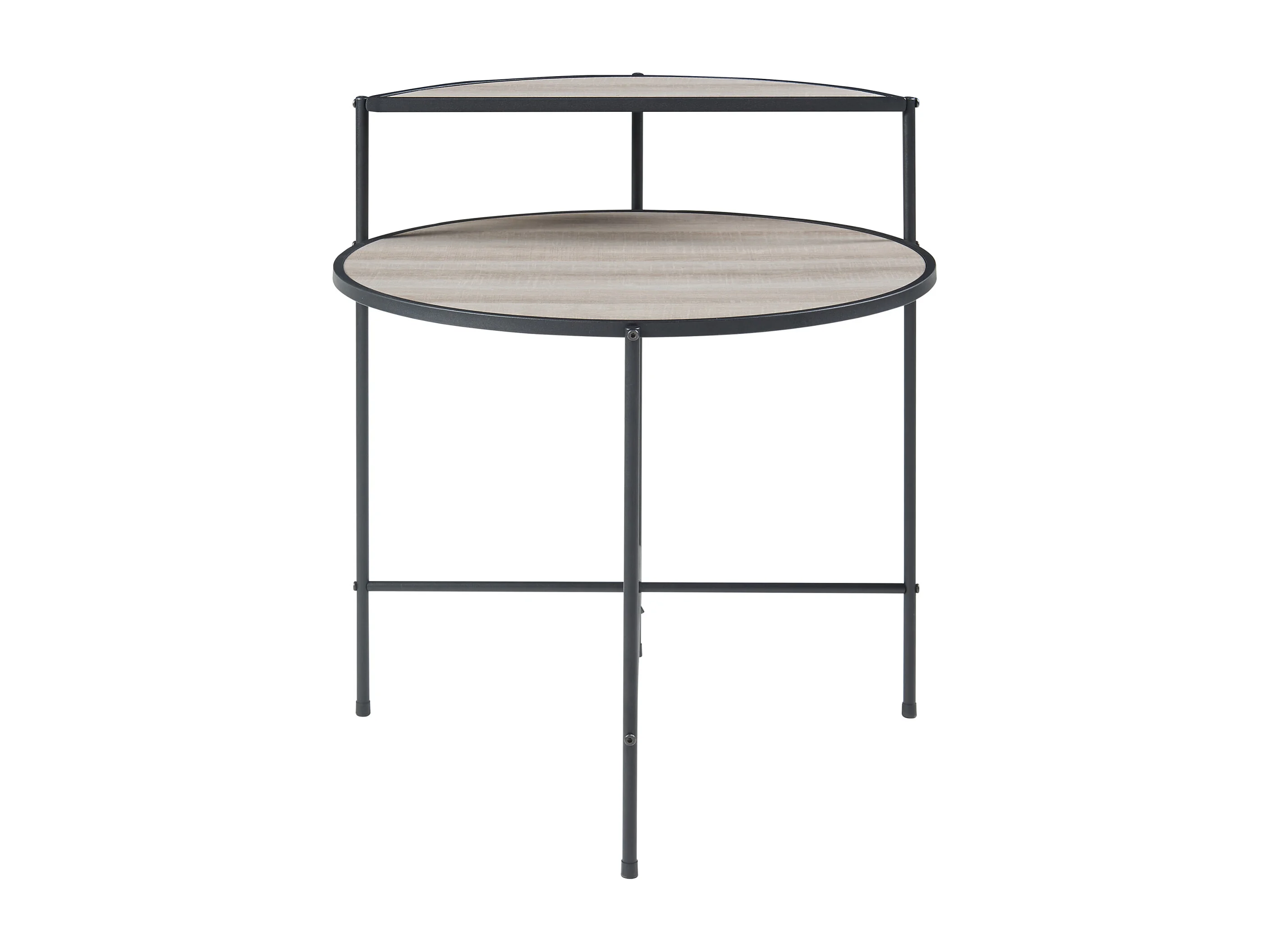 Table d'appoint, Table de salon en bois coloris chêne et métal noir - diamètre 40 x hauteur 45 cm