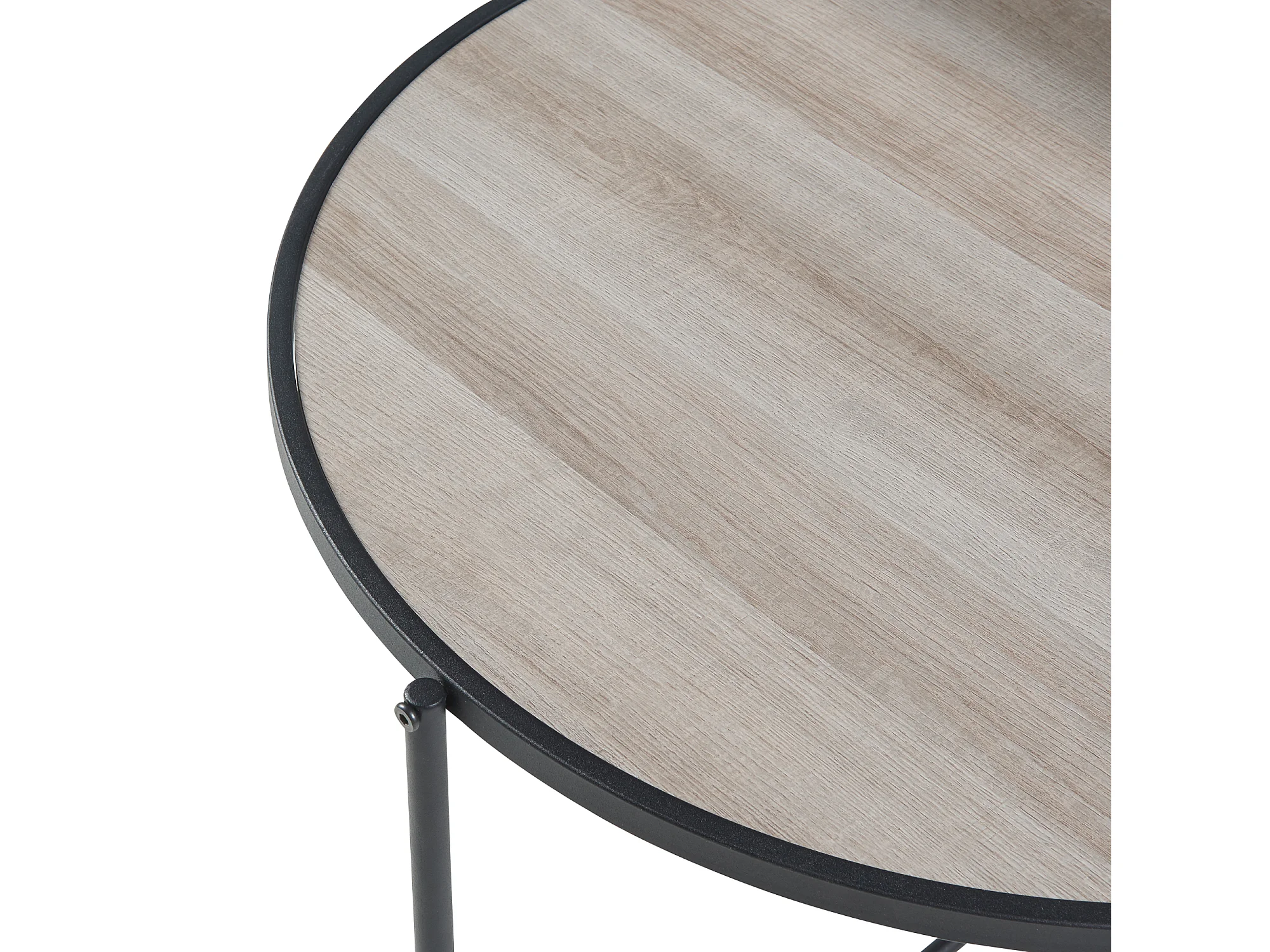 Table d'appoint, Table de salon ronde en bois chêne et métal noir - diamètre 60 x hauteur 48 cm
