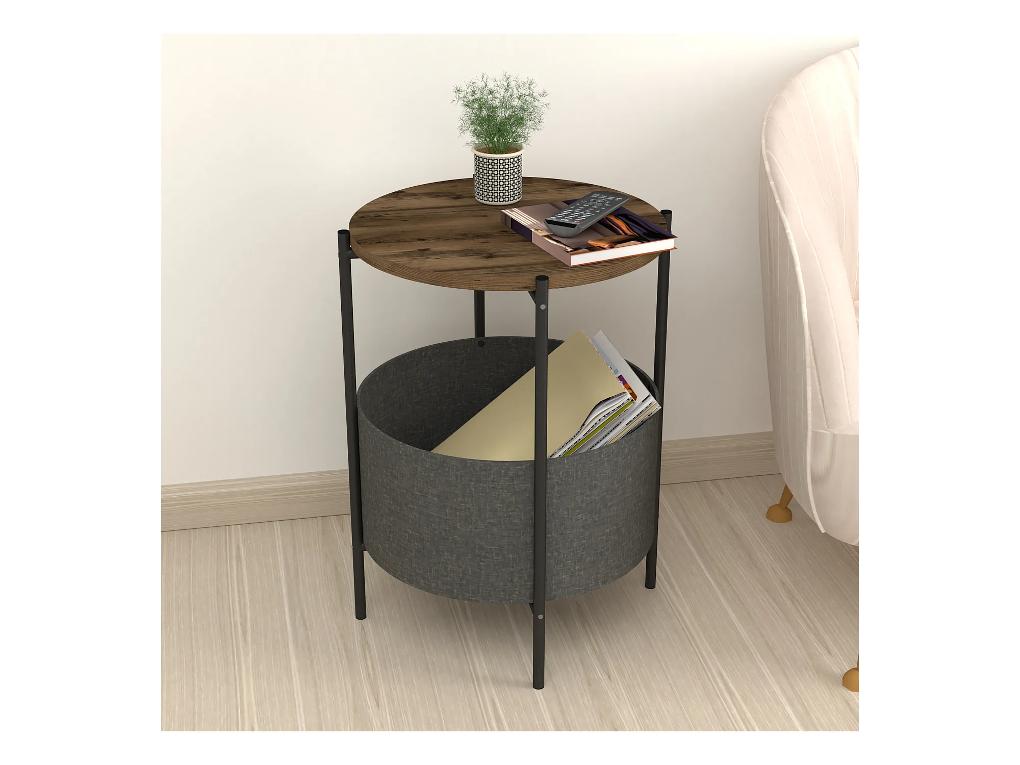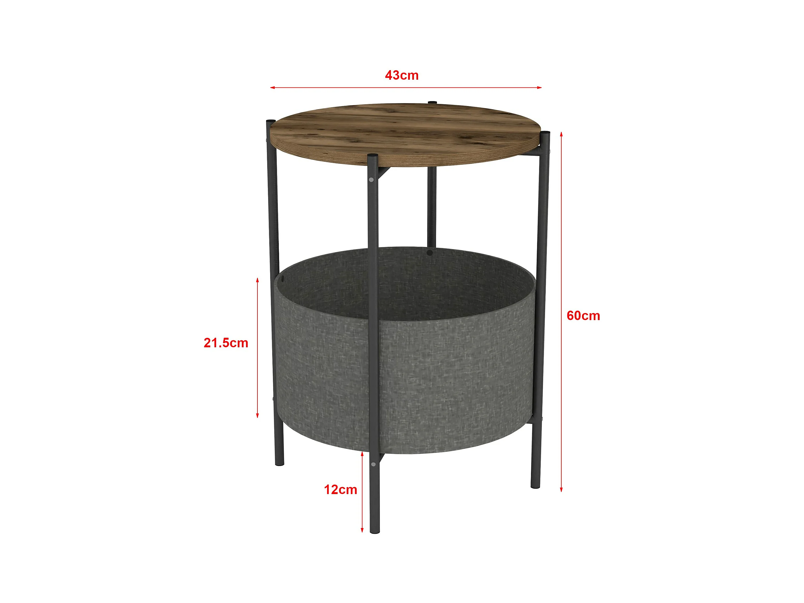 Table d'appoint ronde Hofors avec panier de rangement 60 x 43 cm effet chêne patiné / gris [en.casa]