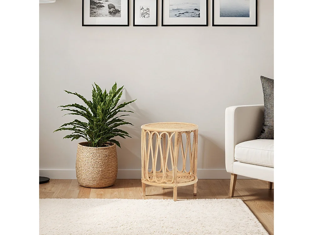 Table d'appoint 2 étagères en rotin naturel - Marthe