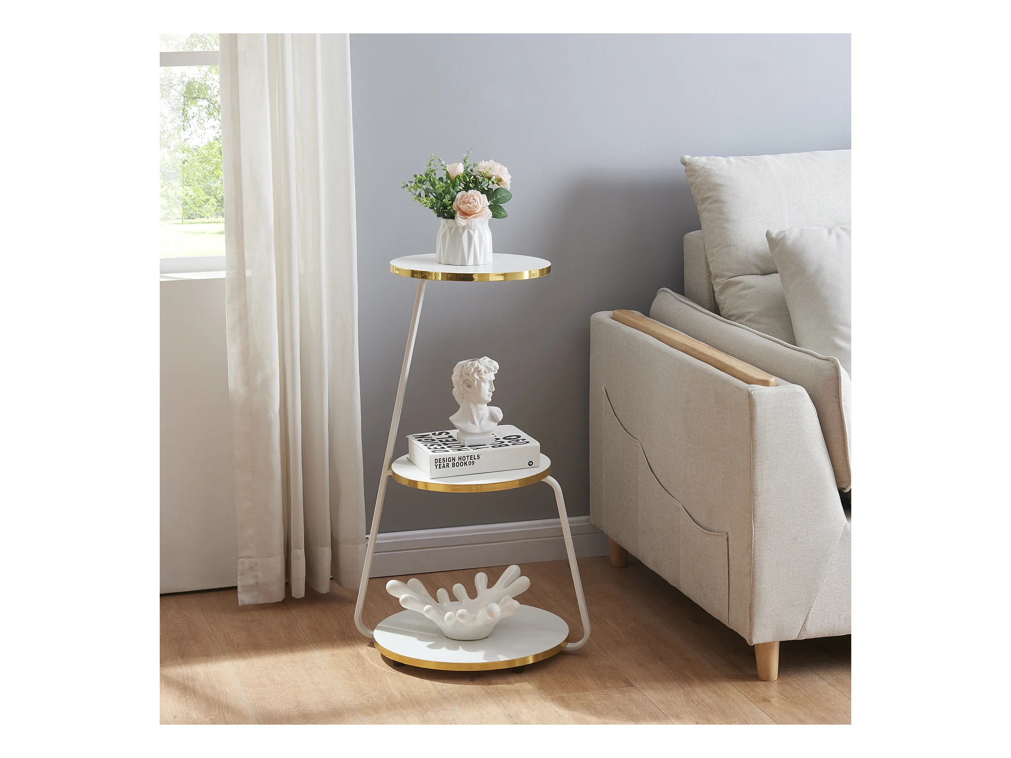 Table d'appoint Sipoo à 3 niveaux 74 x 46 x 37 cm blanc / doré [en.casa]