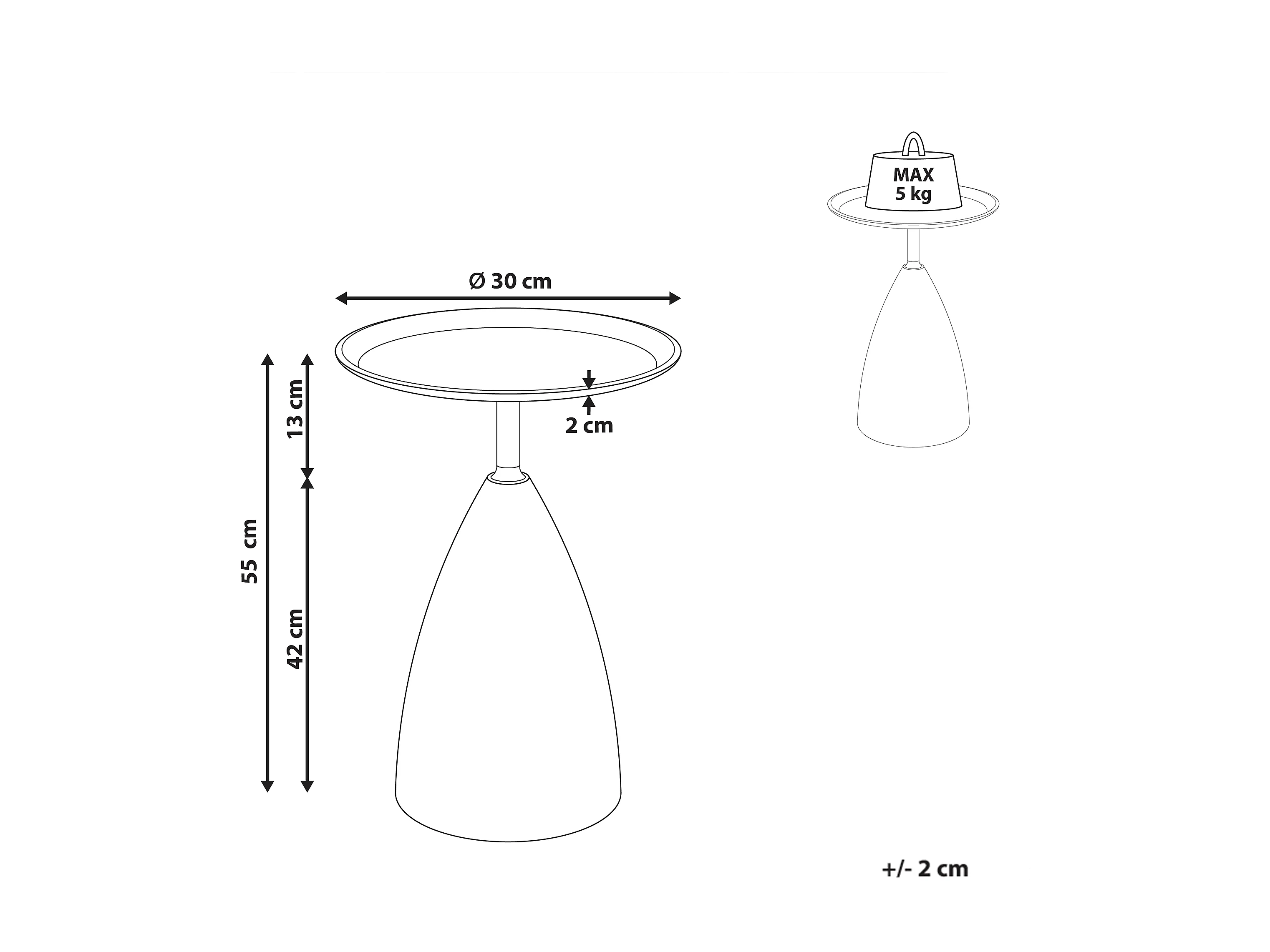 Bout de canapé avec plateau rond en Métal H56 cm - JAMIE