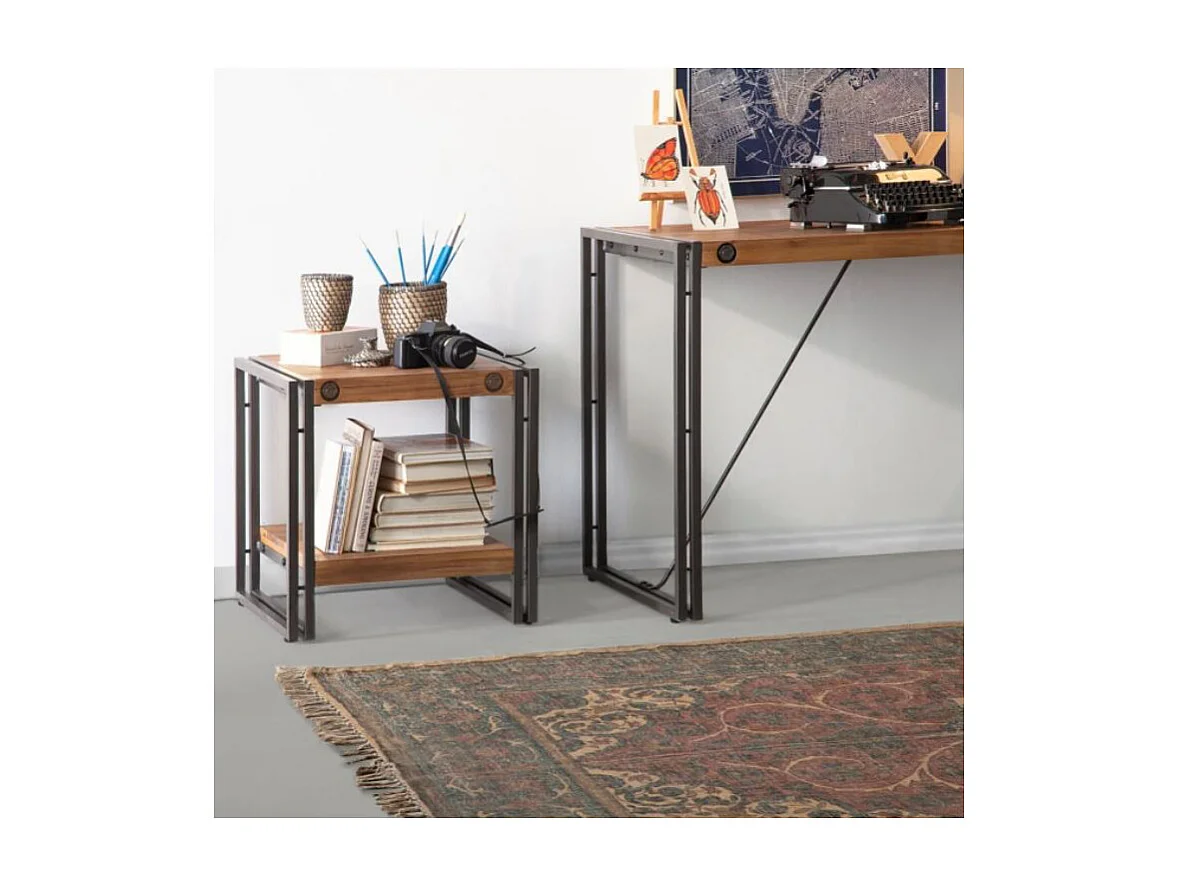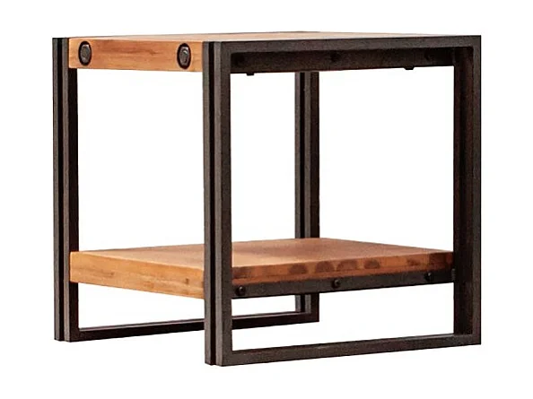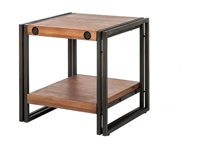 Table d'appoint carrée 50 cm en bois d'acacia et métal - WORKSHOP