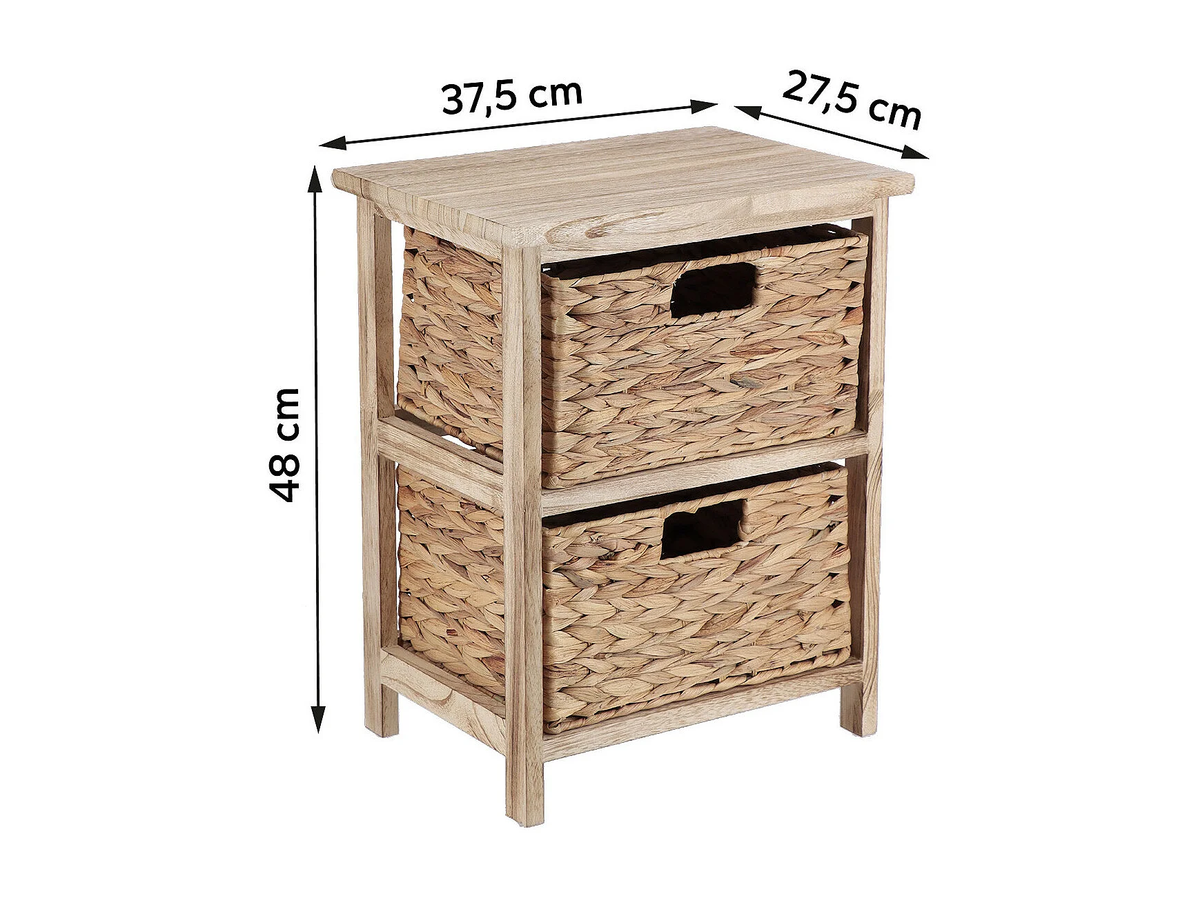 Table d'appoint Table de chevet en Bois Naturel avec 2 Paniers tressés H 48 cm
