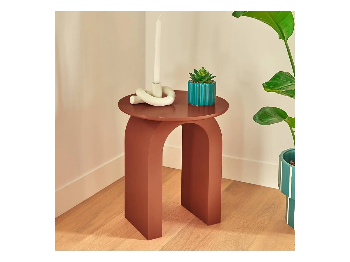 Table d'appoint, table ronde coloris marron - Diamètre 40 x Hauteur 45 cm