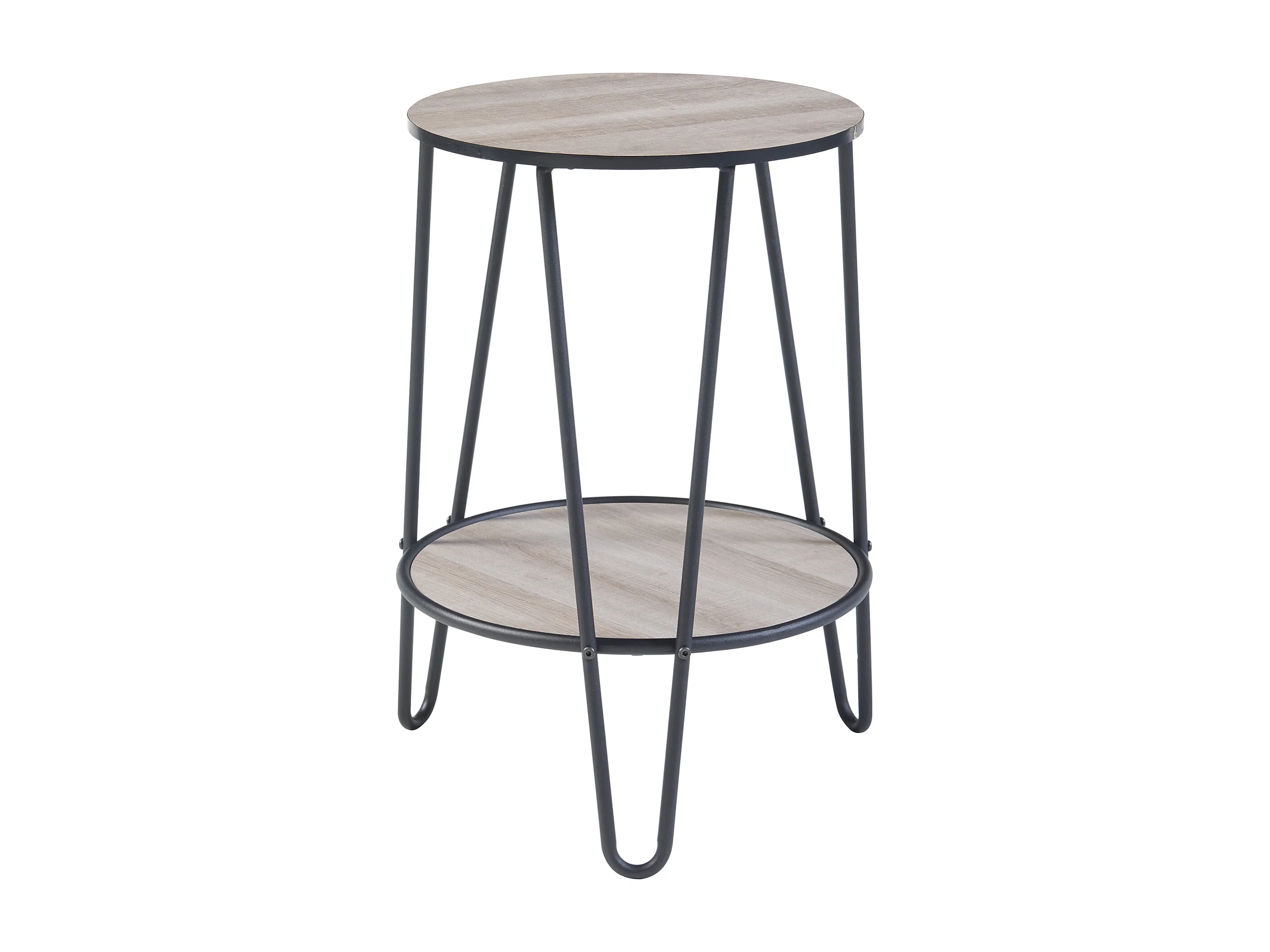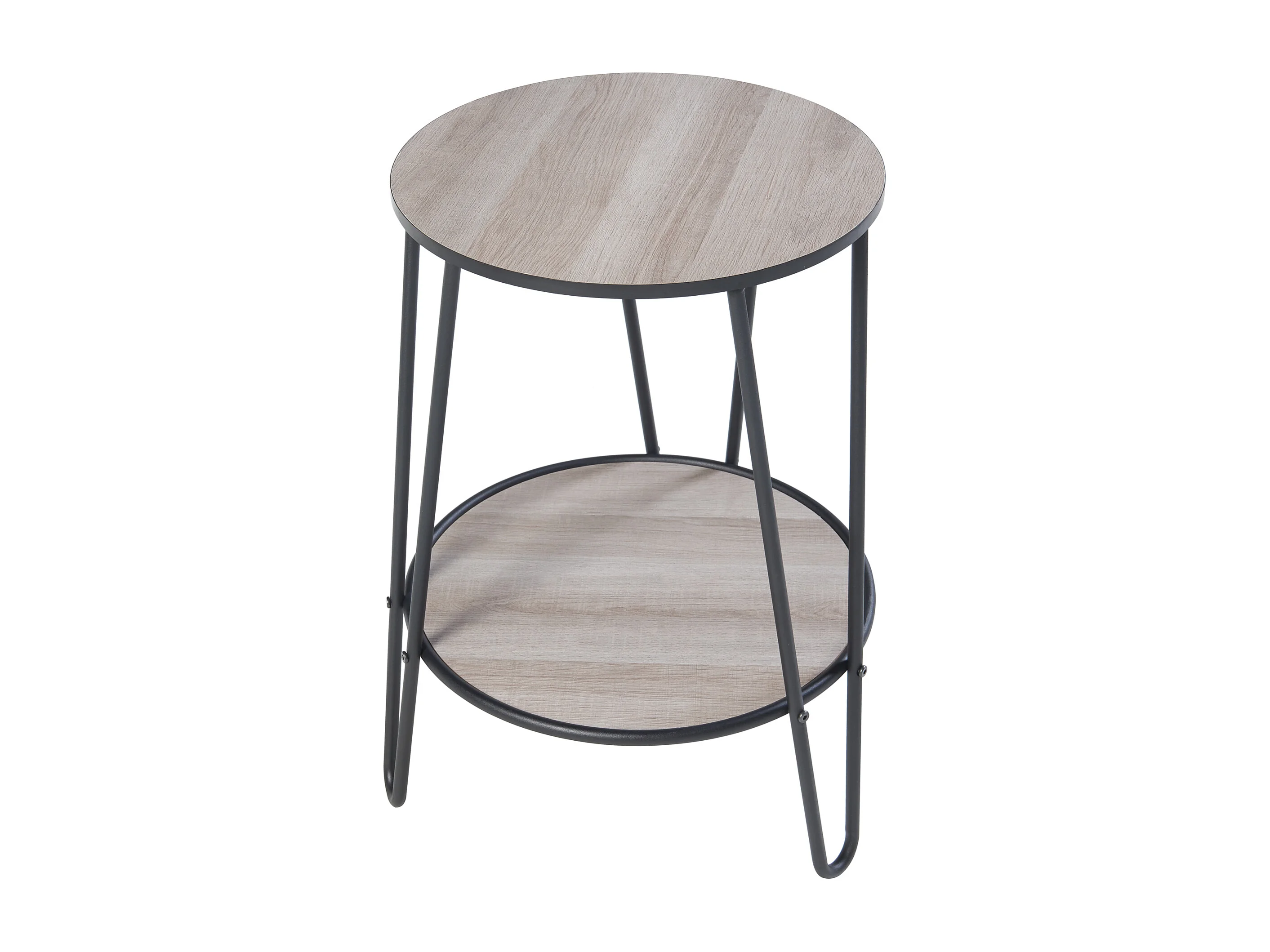 Table d'appoint, Table de salon en bois coloris chêne et métal noir - diamètre 40 x hauteur 45 cm