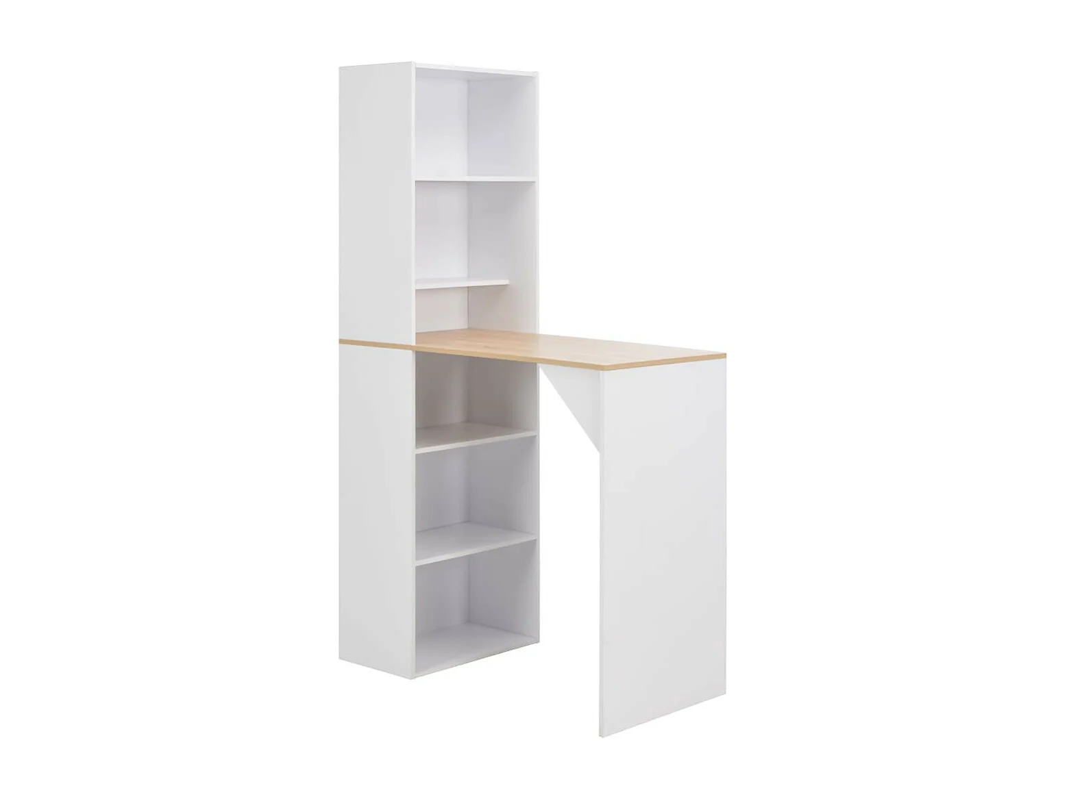 Table de bar avec armoire de rangement bois naturel et blanc Klarys