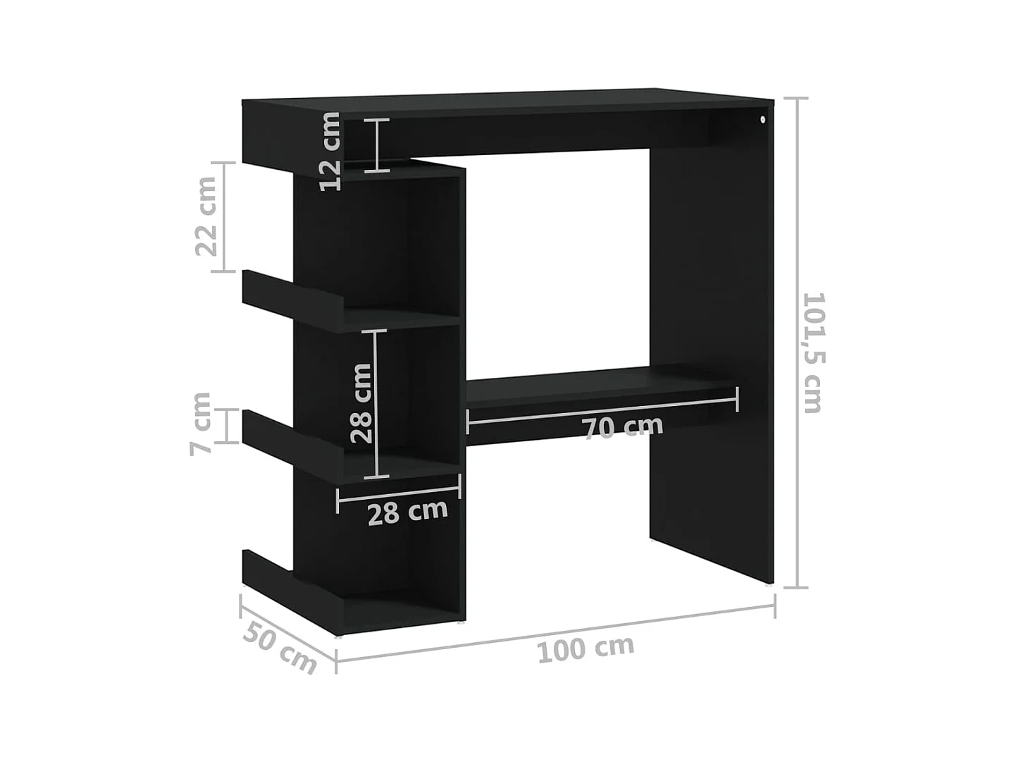 Table de bar et rangement Noir 102x50x103,5cm Bois d'ingénierie