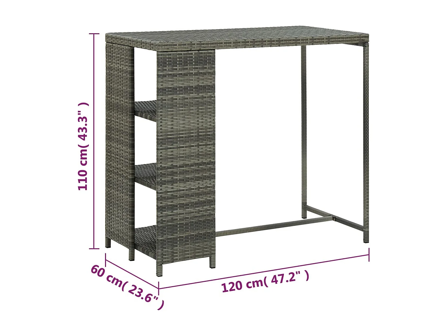 Table de bar avec rangement Gris 120x60x110 cm Résine tressée