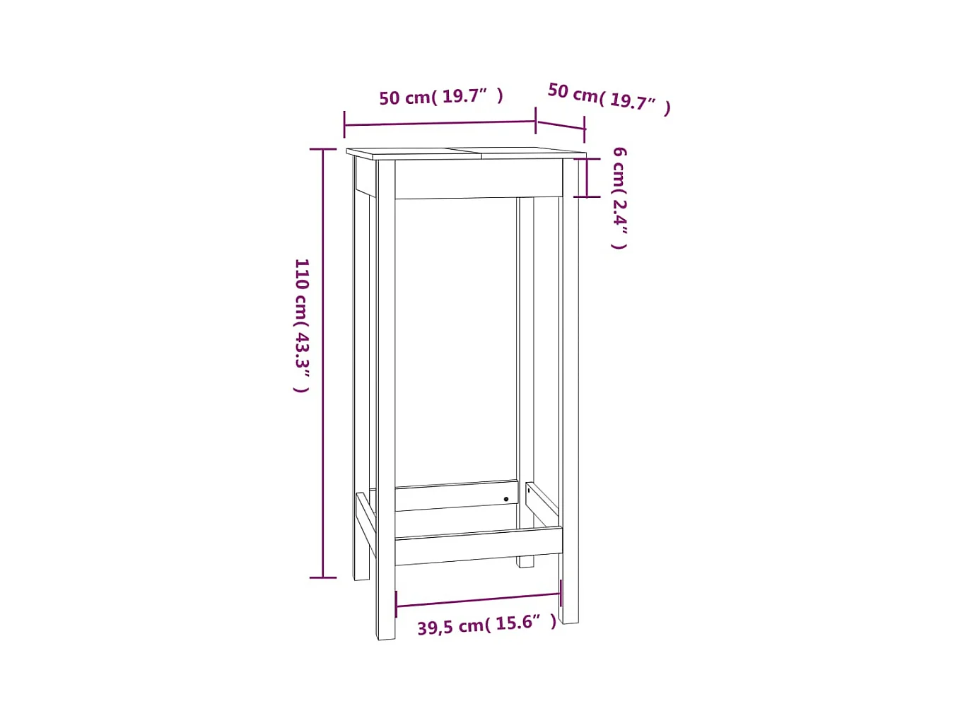 Table de bar blanc 50x50x110 cm bois massif de pin