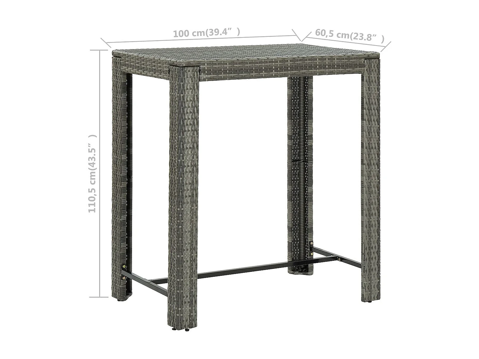 Table de bar de jardin Gris 100x60,5x110,5 Résine tressée