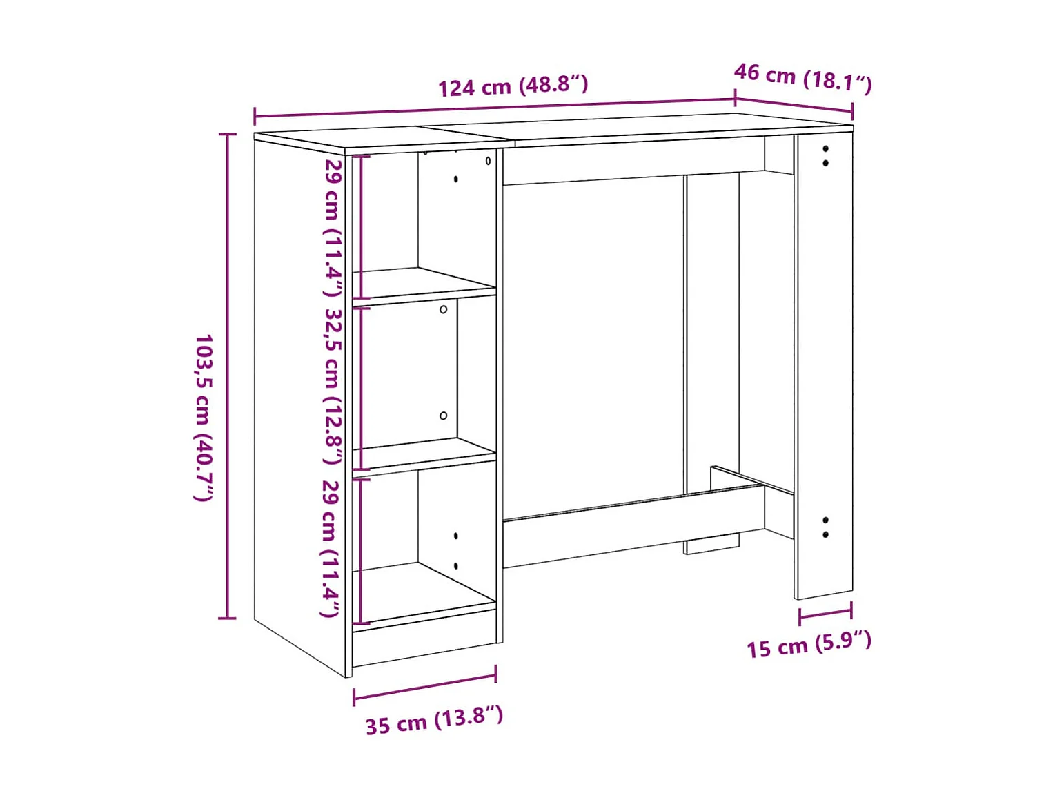 Table de bar et étagère blanc 124x46x103,5 cm bois d'ingénierie