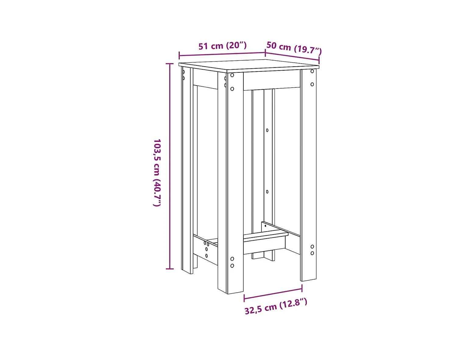 Table de bar sonoma gris 51x50x103,5 cm bois d'ingénierie