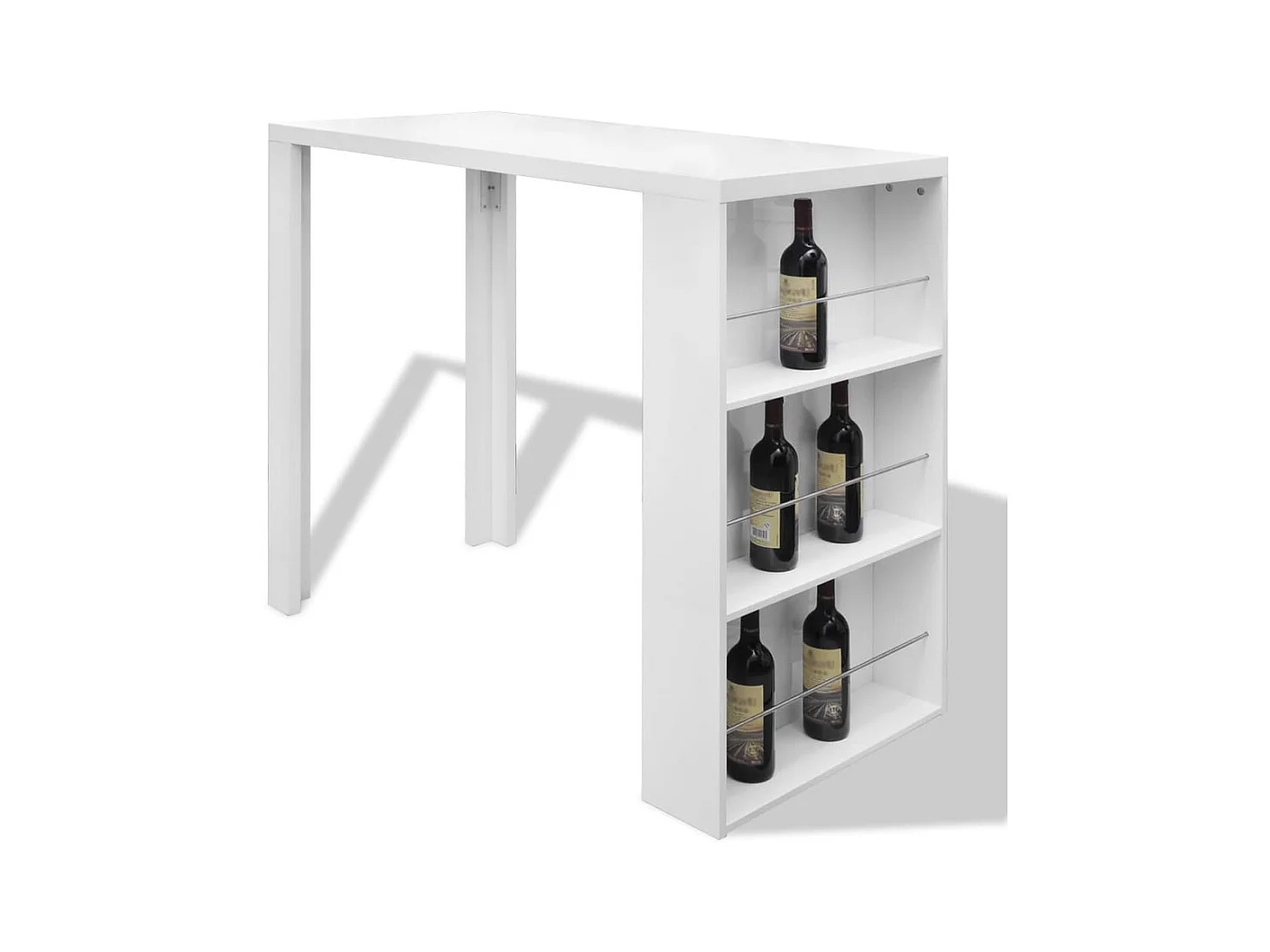 Table de bar MDF avec casier à bouteilles Blanc haut brillance