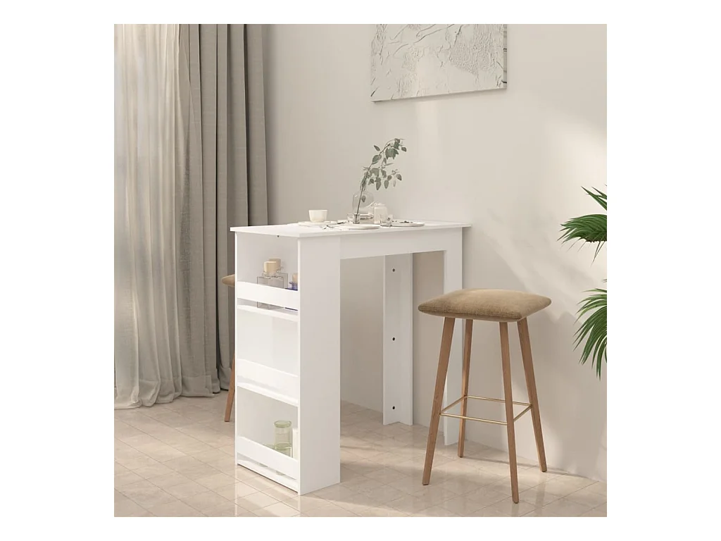 Table de bar et étagères blanc 90x40x103,5 cm bois d'ingénierie