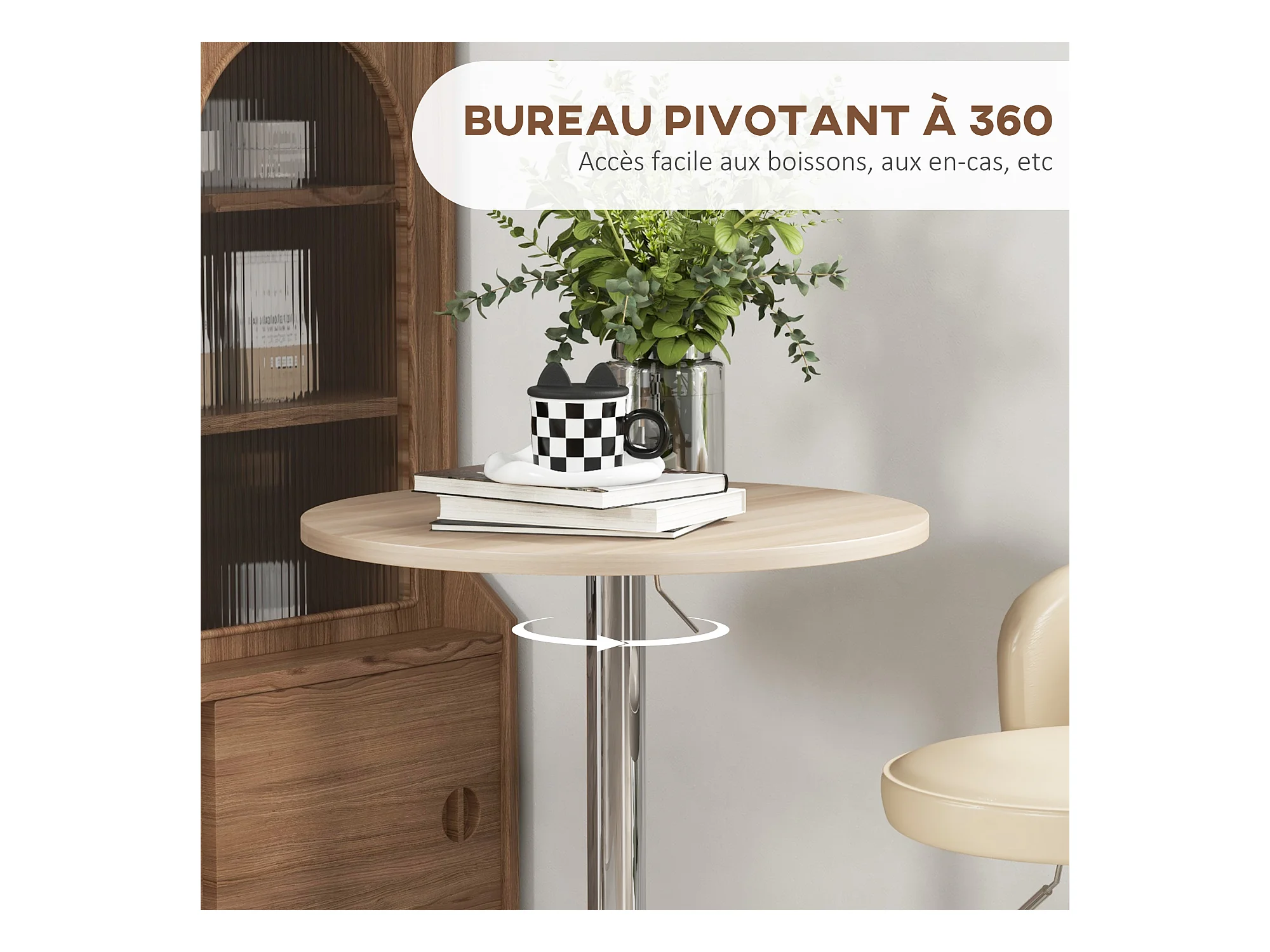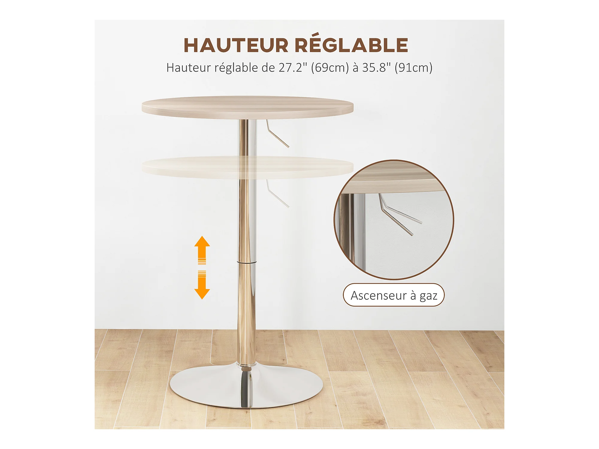 Table de bar ronde Ø 60 cm table bistro chic hauteur réglable 69-91 cm acier chromé aspect bois clair