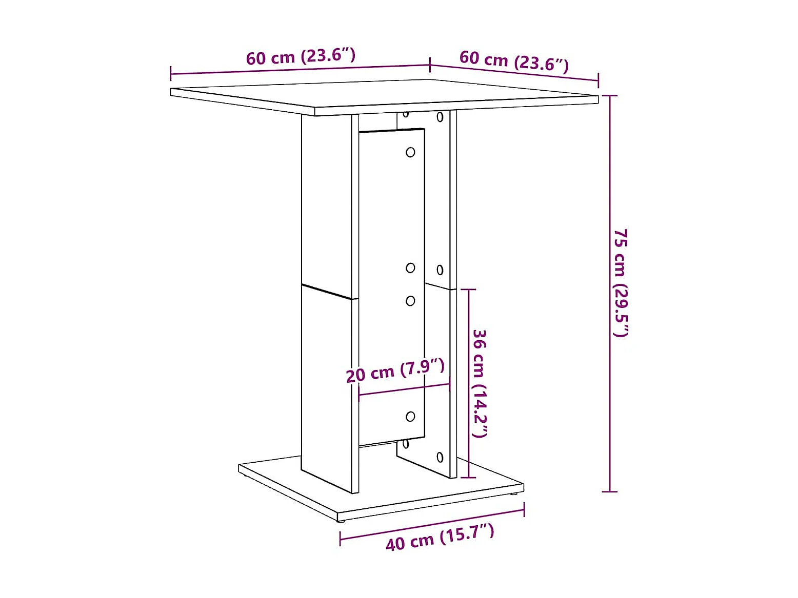 Table de bistro Sonoma gris 60x60x75 cm Bois d'ingénierie
