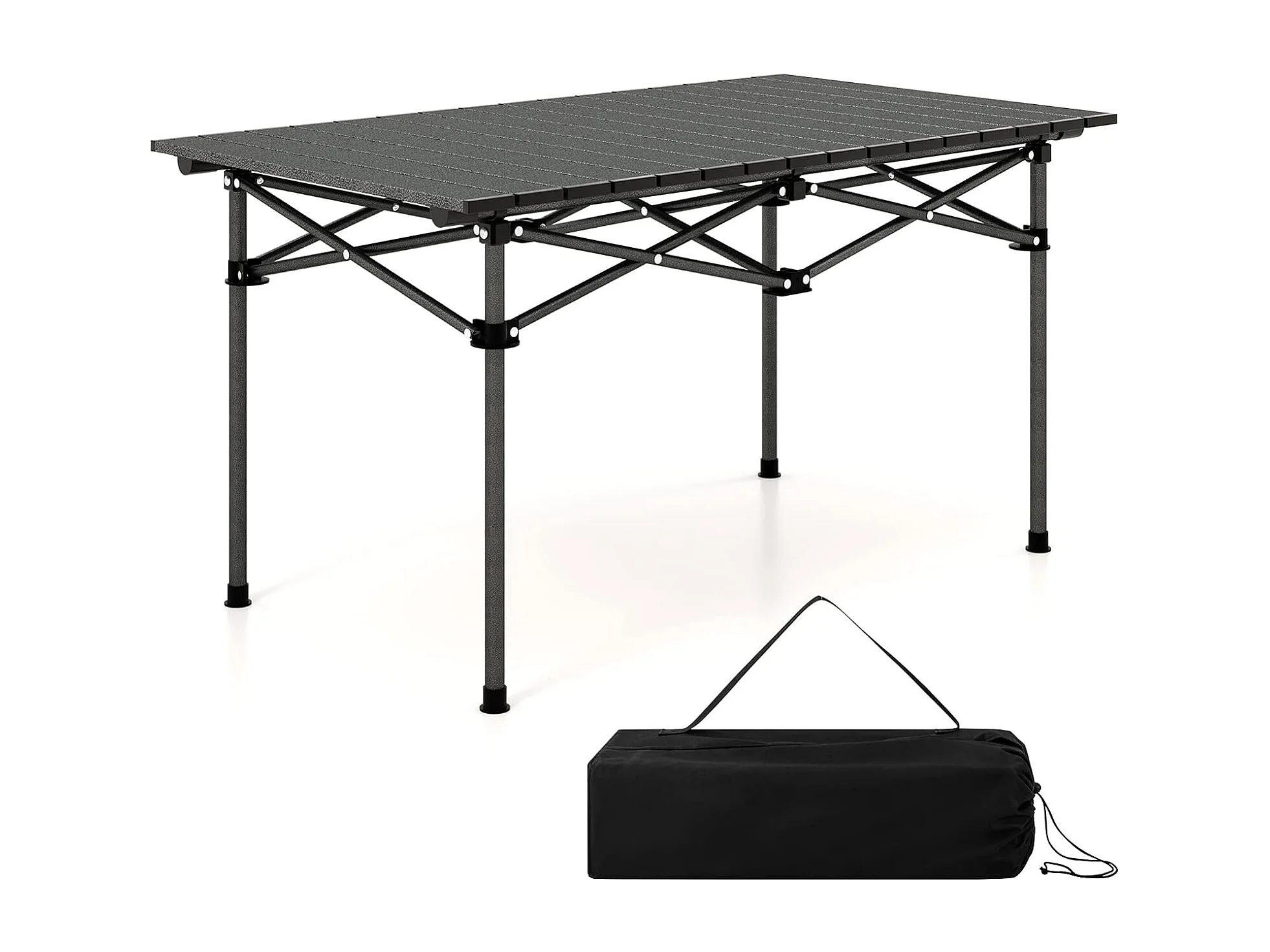 Table de CamBoisg Pliante Portable Aluminium 4-6 Personnes 95 x 55CM Charge 60KG Table Pique-Nique avec Sac de Transport Noir