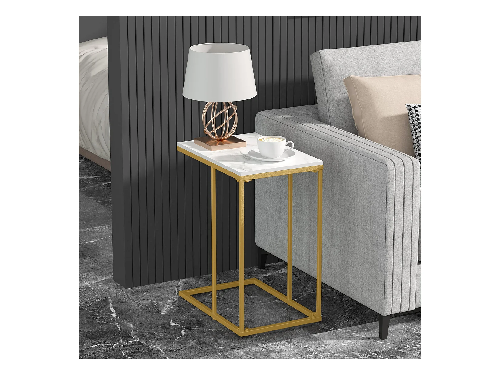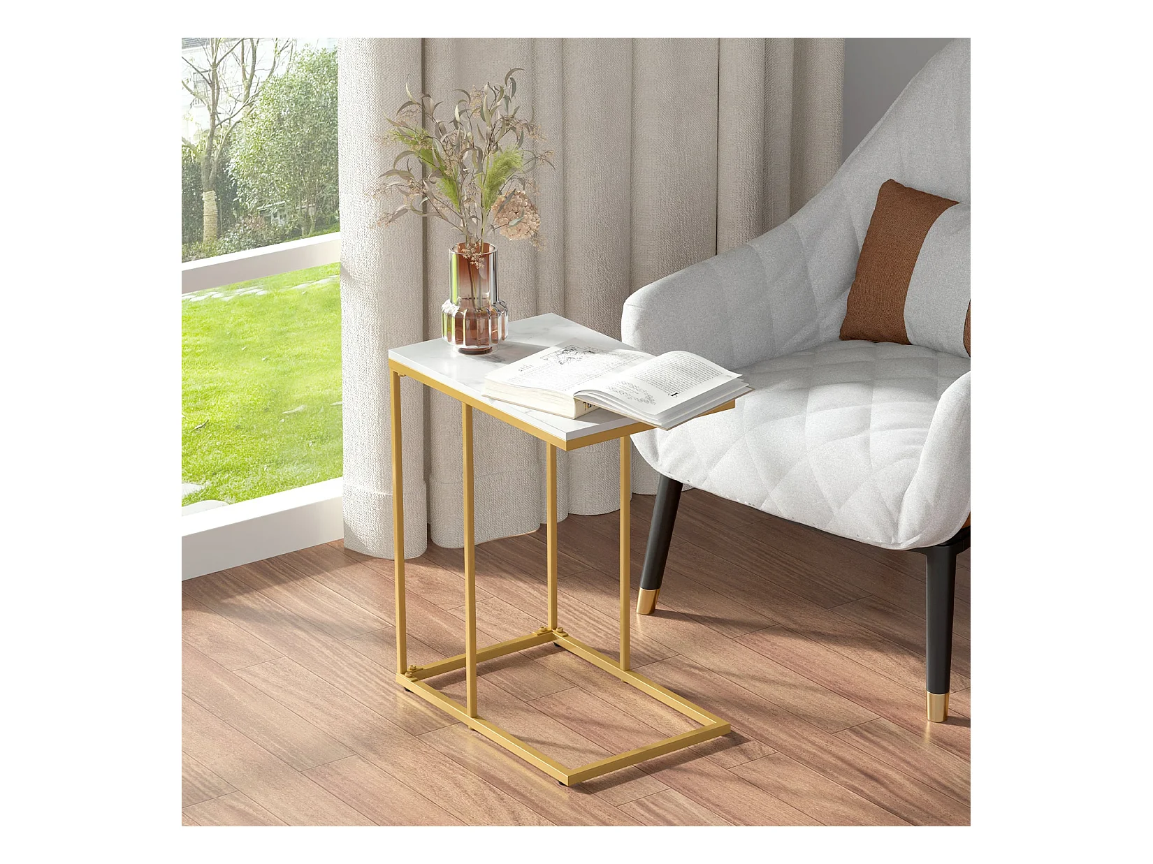 Table de canapé marbre de salon métal guéridon rectangulaire pour salon bureau chambre 45x30x55cm