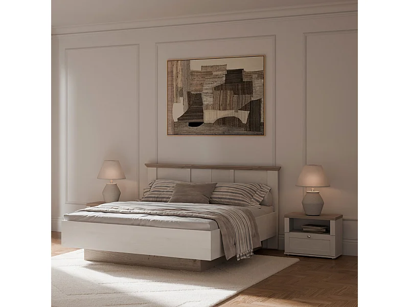 Table de chevet 1 niche 1 tiroir en décor chêne blanchi – ANGELE