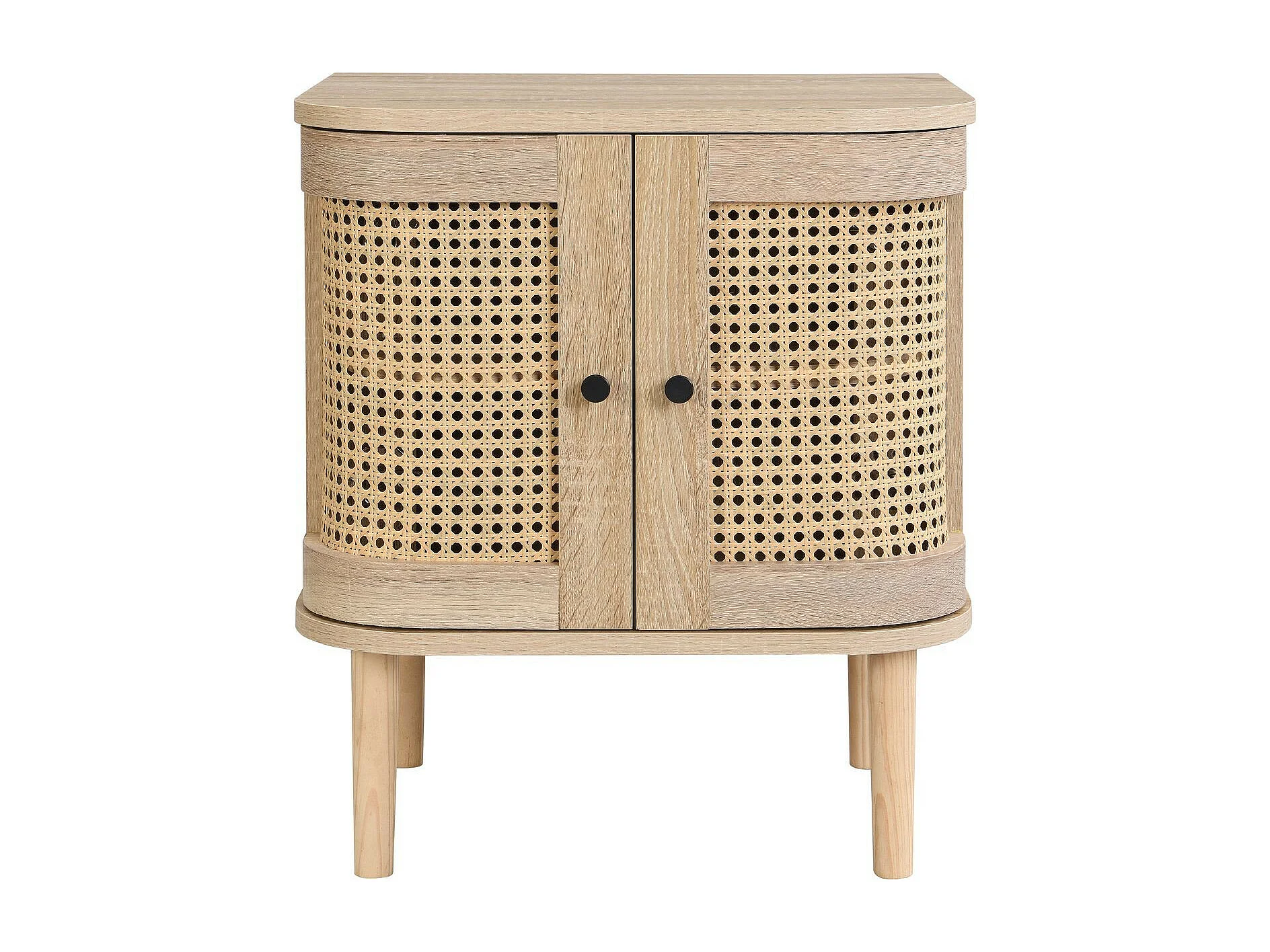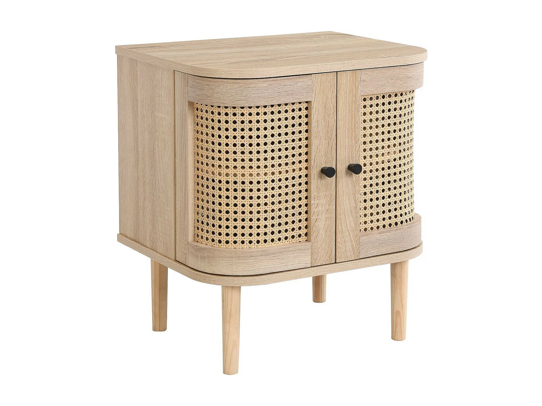 Table de chevet 2 portes couleur chêne et cannage 40 cm - Bali