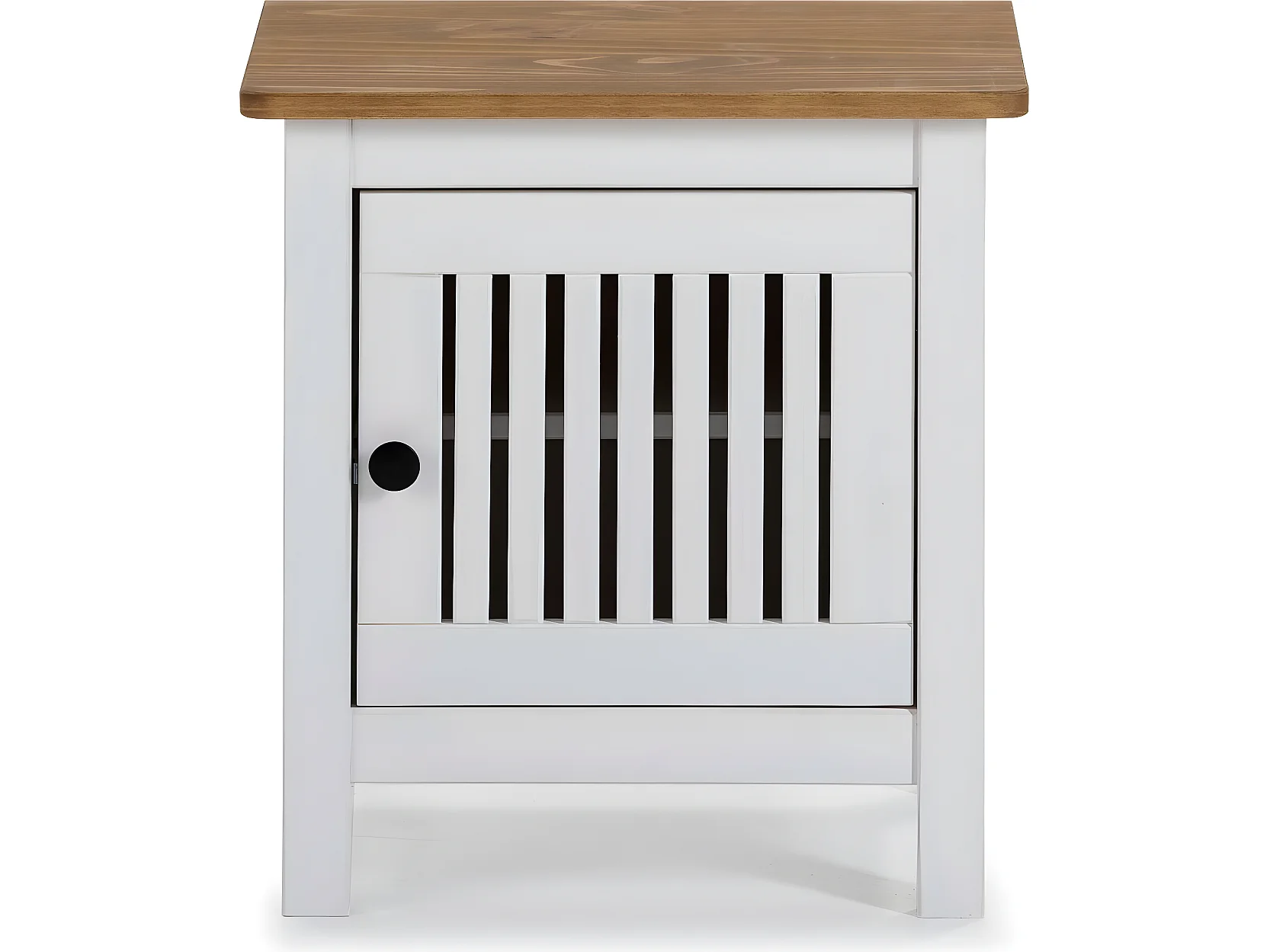 Table de chevet 1 porte en pin massif blanc - Fabia