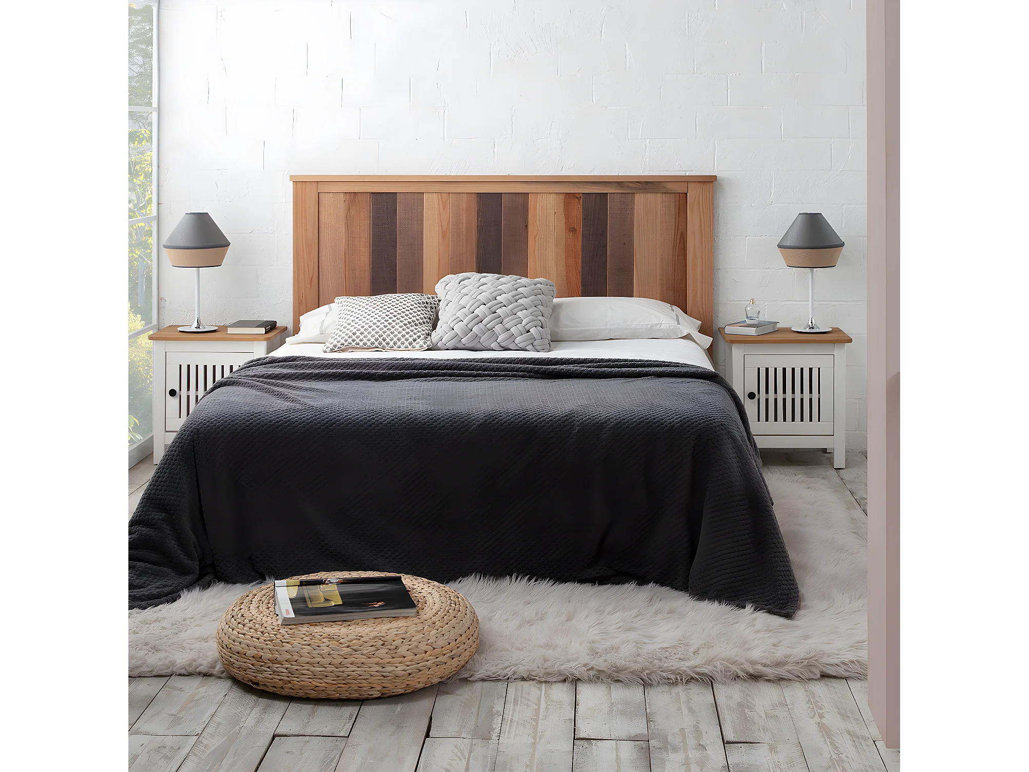 Table Chevet 2 tiroirs Betty Blanc, Fabriqué en Bois de pin Massif