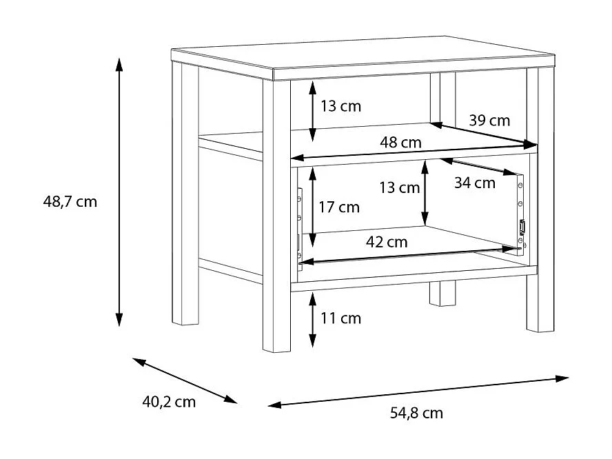 Table de chevet 1 tiroir 1 niche décor bois chêne et noir - MODE