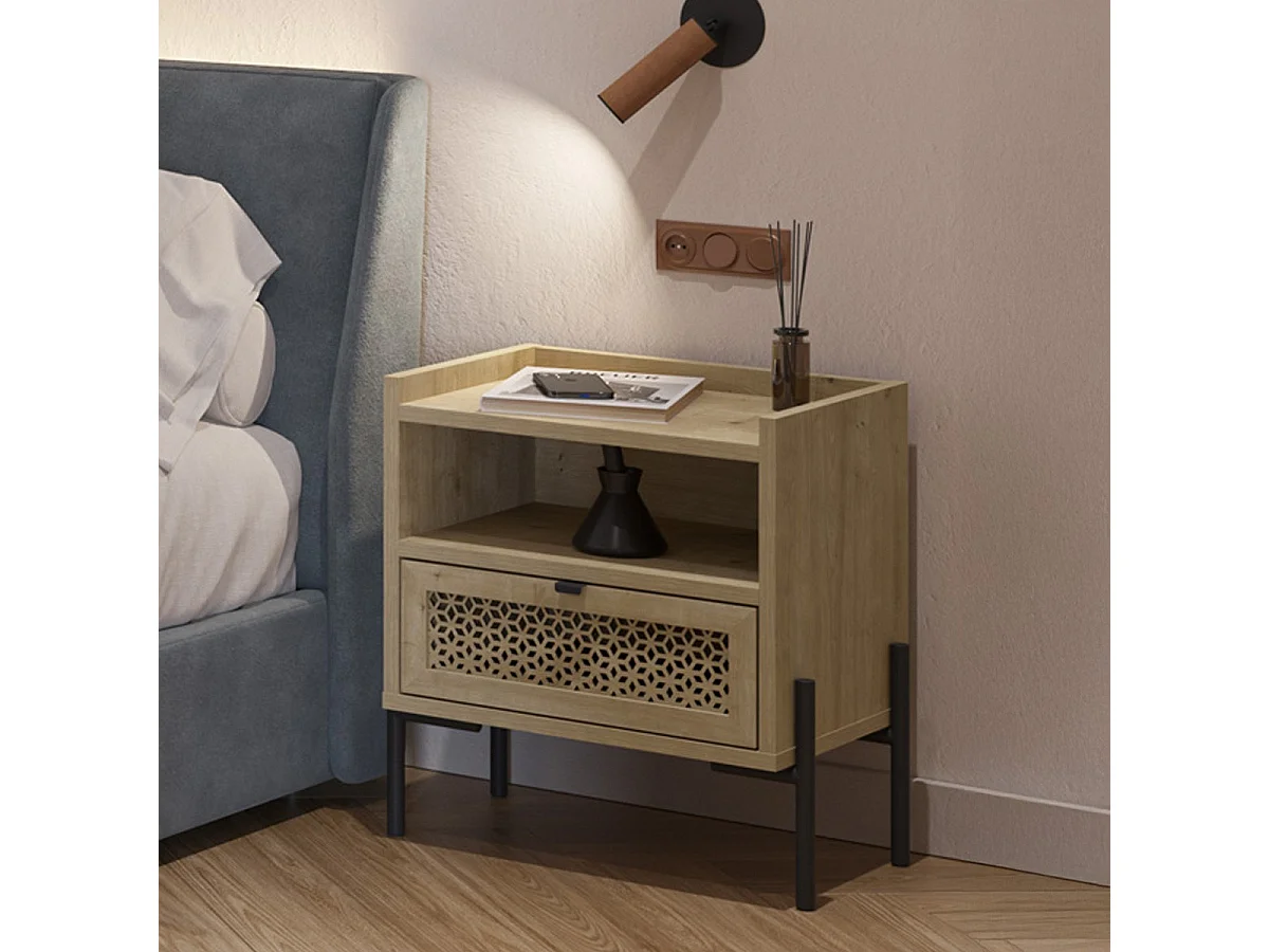 Table de chevet 1 tiroir effet chêne - Corto