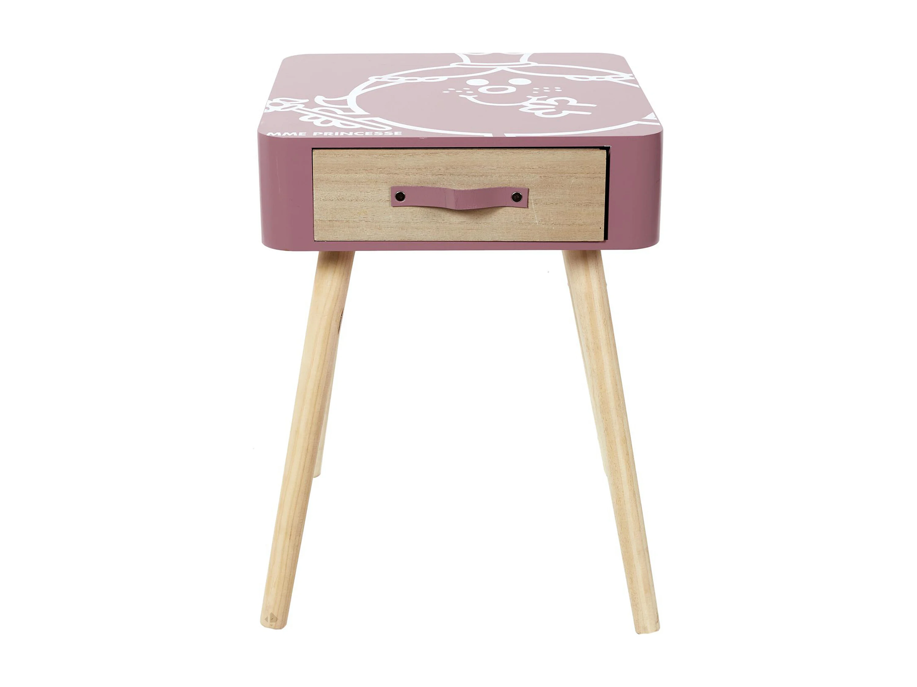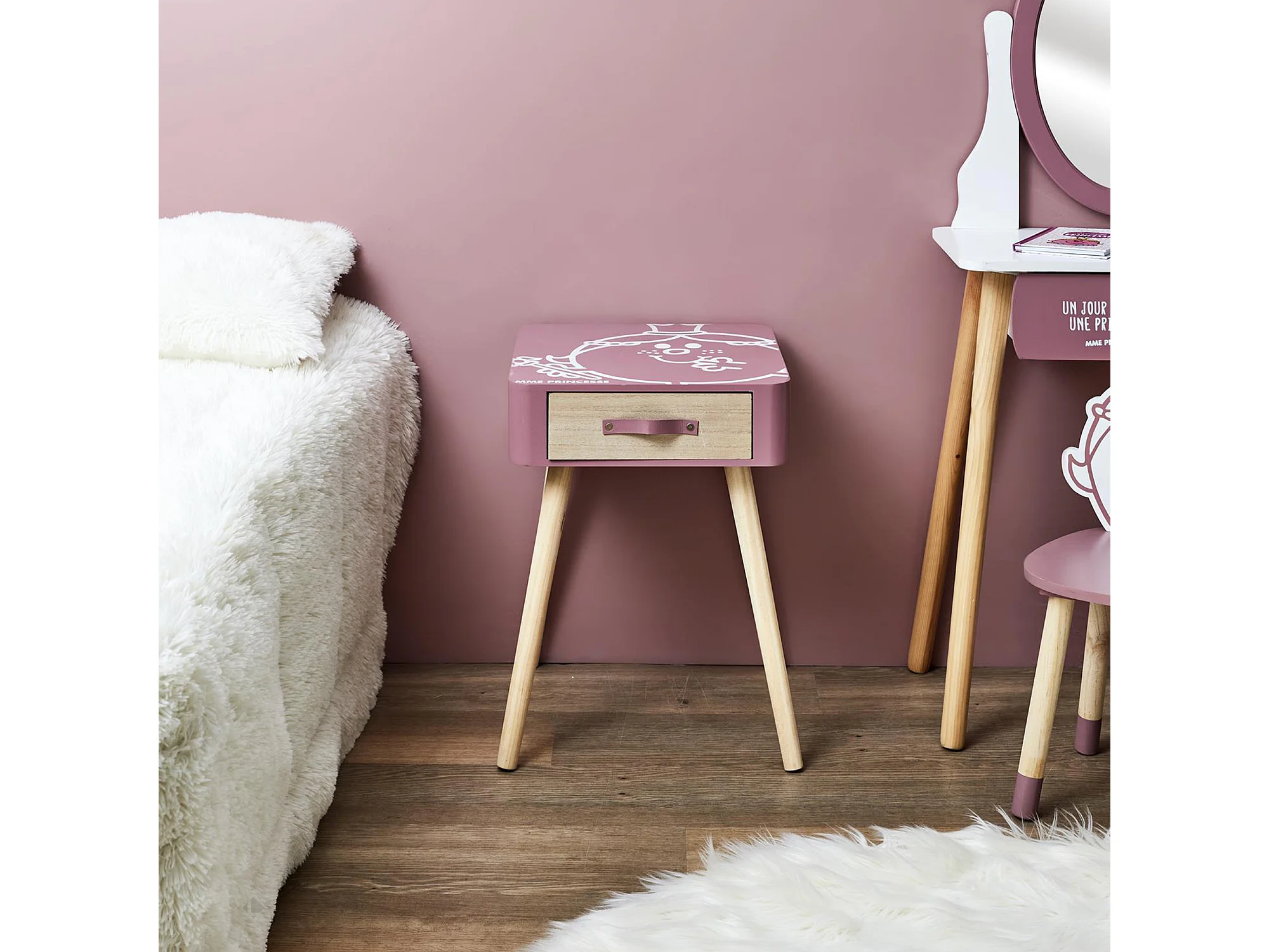 Table de chevet 1 tiroir en bois MONSIEUR MADAME série MME PRINCESSE rose