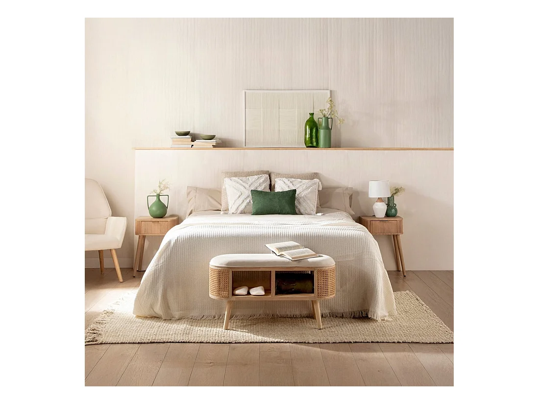 Table de chevet 2 tiroirs en rotin naturel 42x71 cm-Mapi