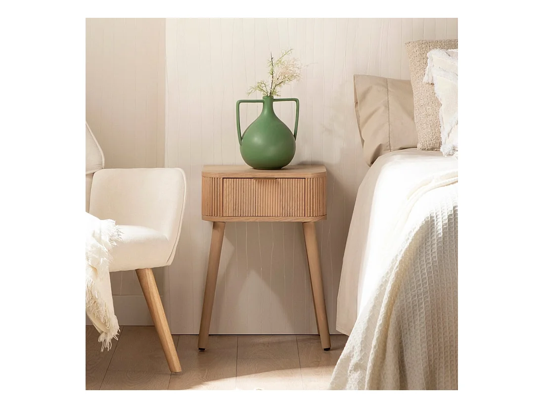 Table de chevet 1 tiroir en bois naturel 45x60 cm-Aima