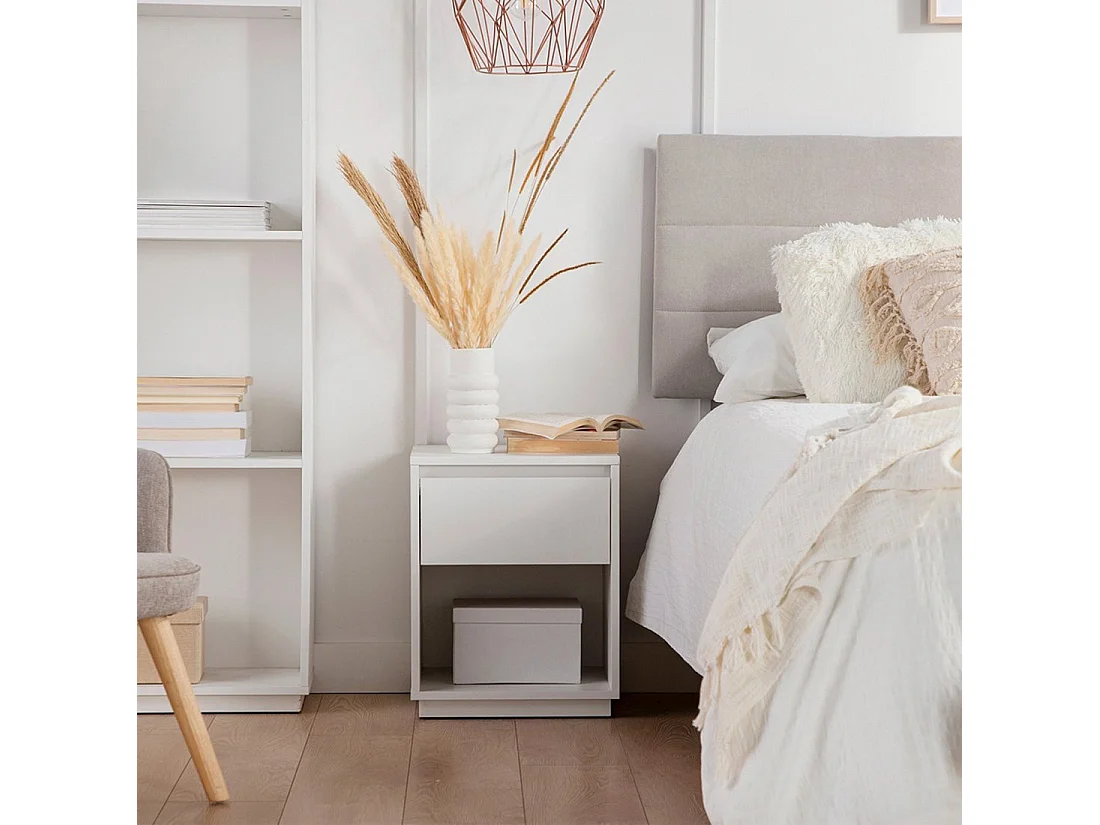 Table de chevet 1 tiroir en laqué blanc 40x50 cm-Oslo