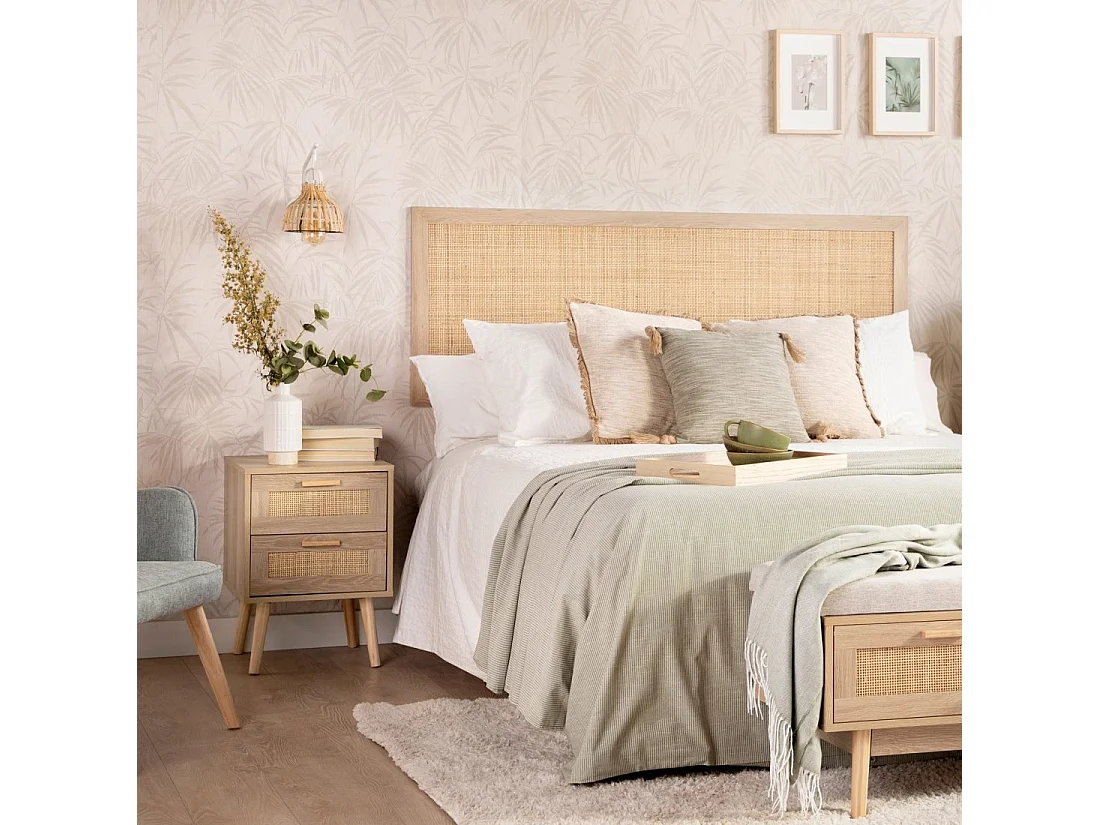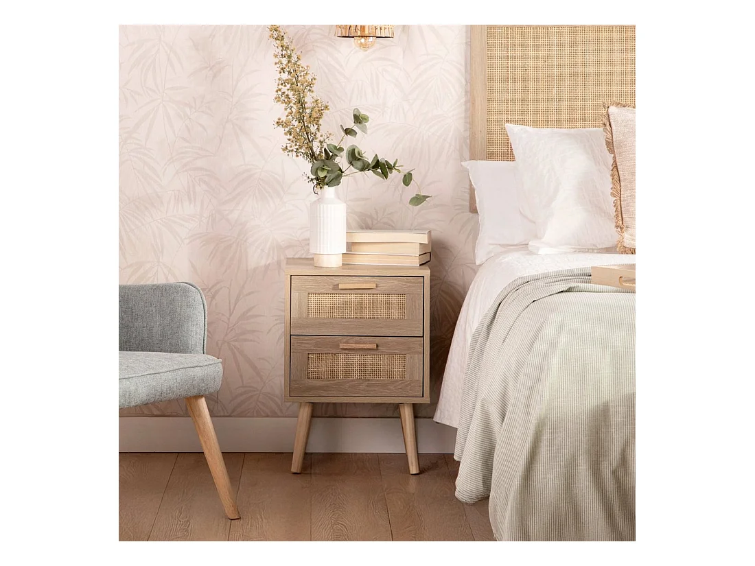 Table de chevet 1 tiroir en rotin naturel 40x56 cm-Tahiti
