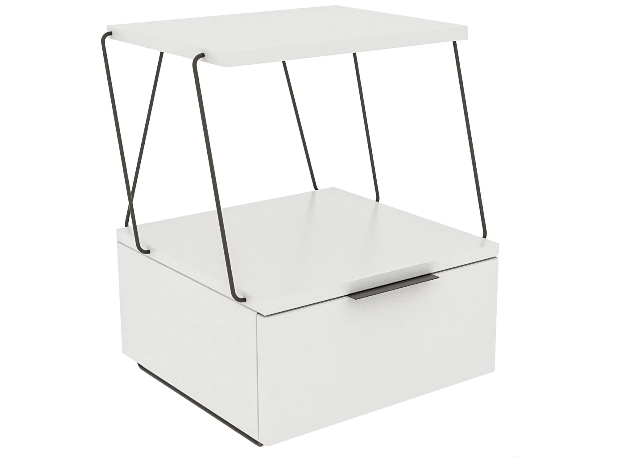 Table de chevet, 100% aggloméré plaqué mélamine, couleur blanc 52x46.8x45