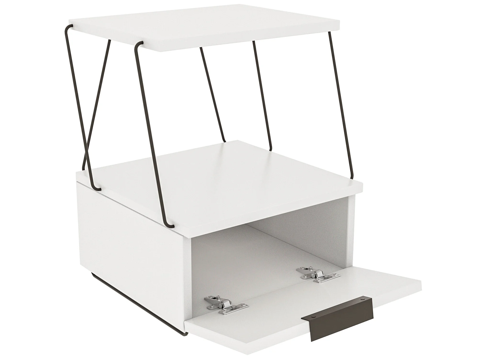 Table de chevet, 100% aggloméré plaqué mélamine, couleur blanc 42x52x41