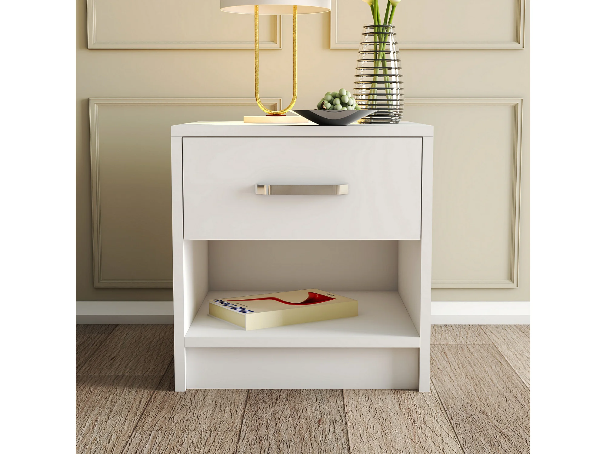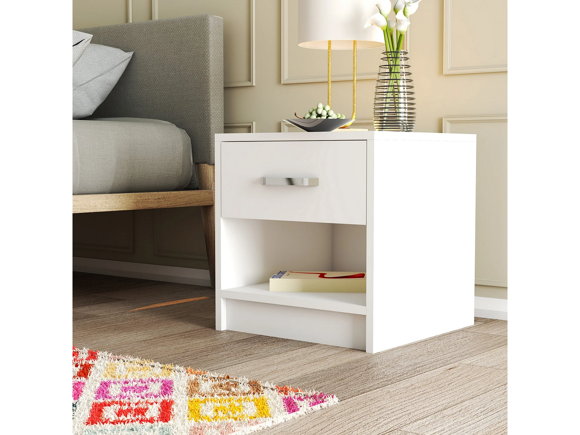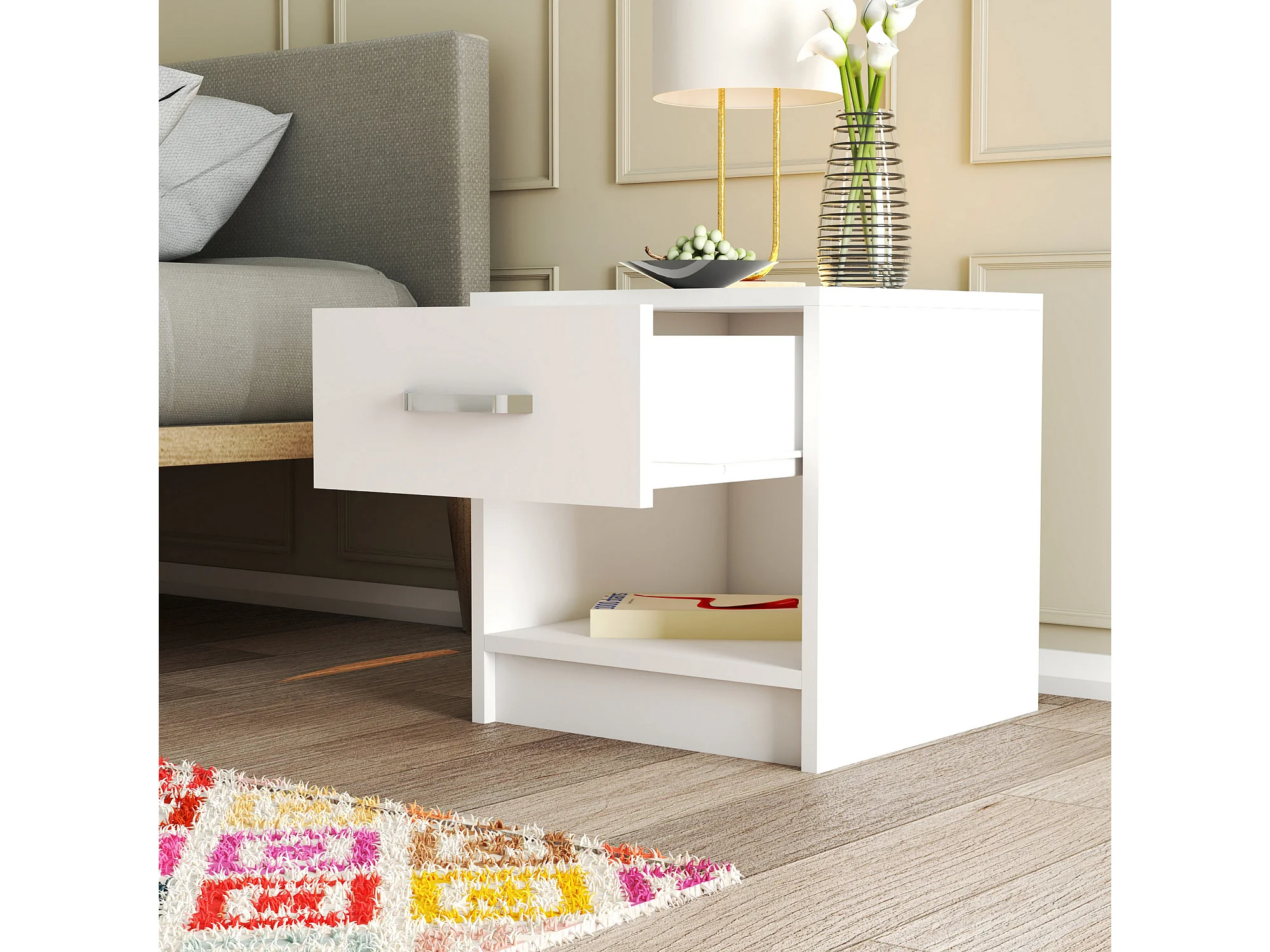 Table de chevet, 100% aggloméré plaqué mélamine, couleur blanc 42x52x41